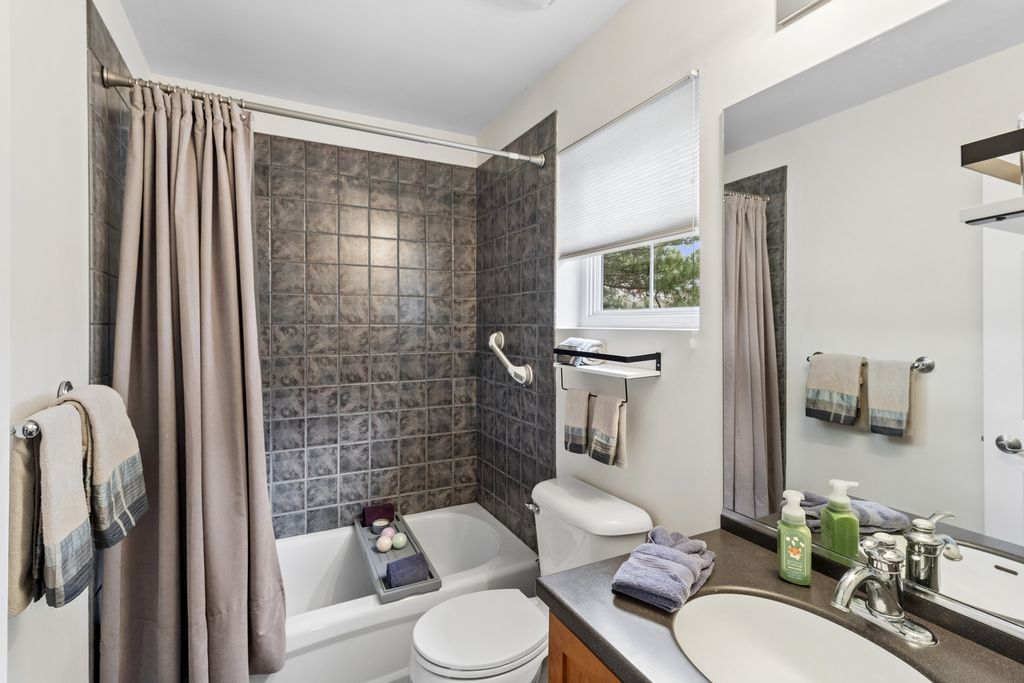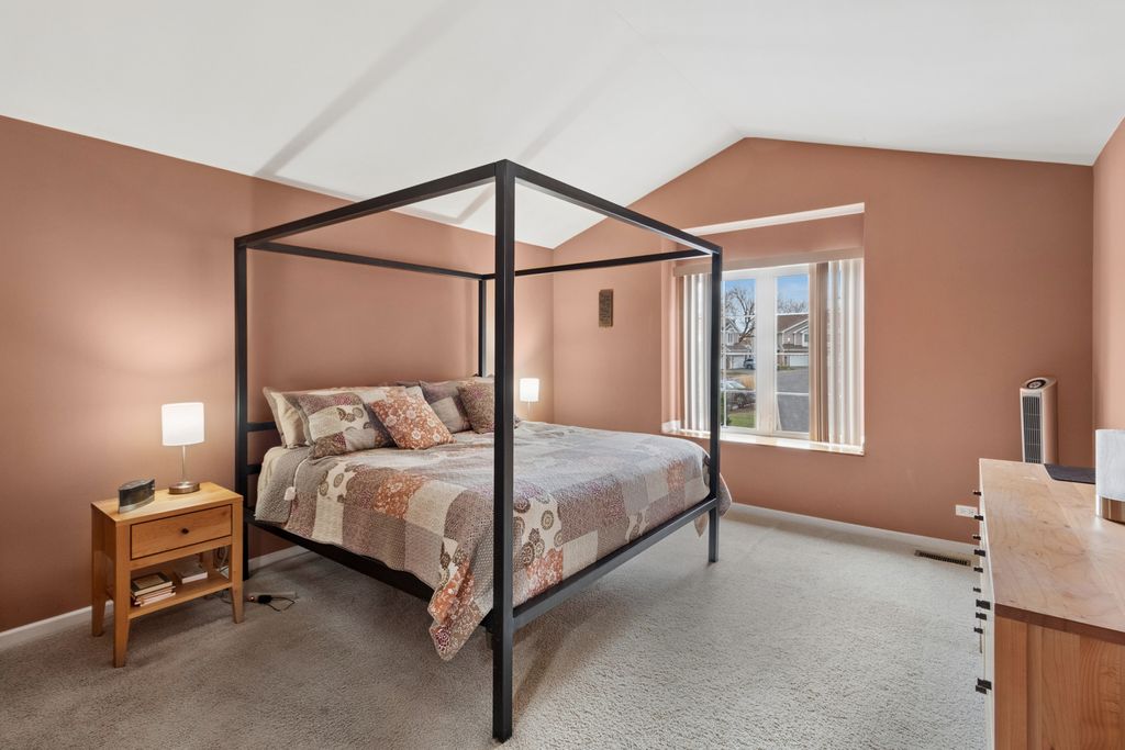 This amazing 3-bedroom townhome is filled with natural light and features a stunning living room with a two-story ceiling. The main level includes a dining room and a spacious kitchen with stainless steel appliances, all complemented by beautiful hardwood flooring, along with a versatile first-floor bedroom or office. Upstairs, you'll find two spacious bedrooms with vaulted ceilings, including a primary suite with a private ensuite bath and skylight that brings in abundant natural light. The additional loft space is perfect for a home office or relaxing hangout area. The full finished basement offers even more room to entertain, complete with an additional half bathroom. All of this, conveniently located near restaurants, shopping and highways!