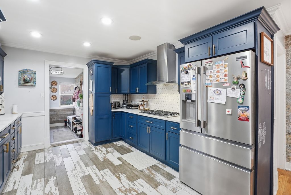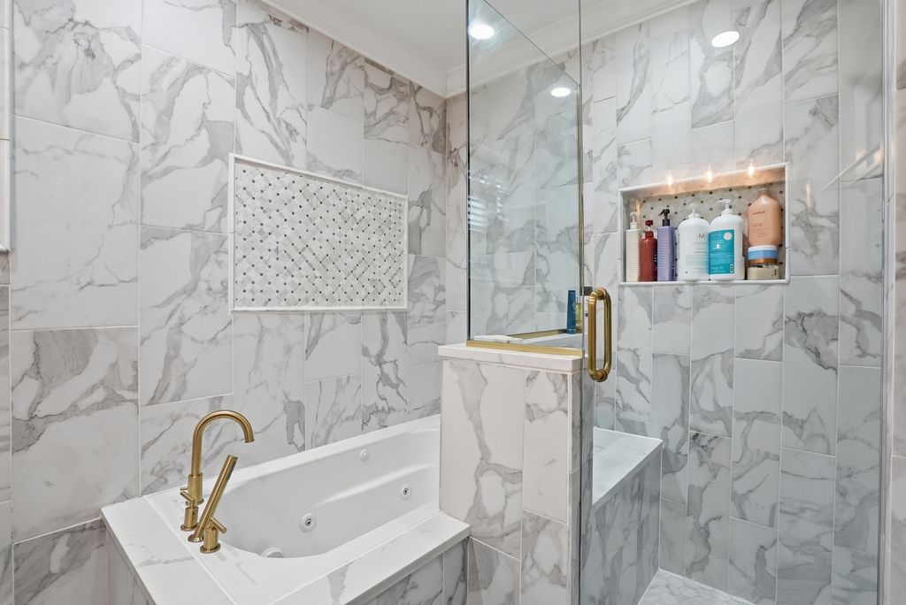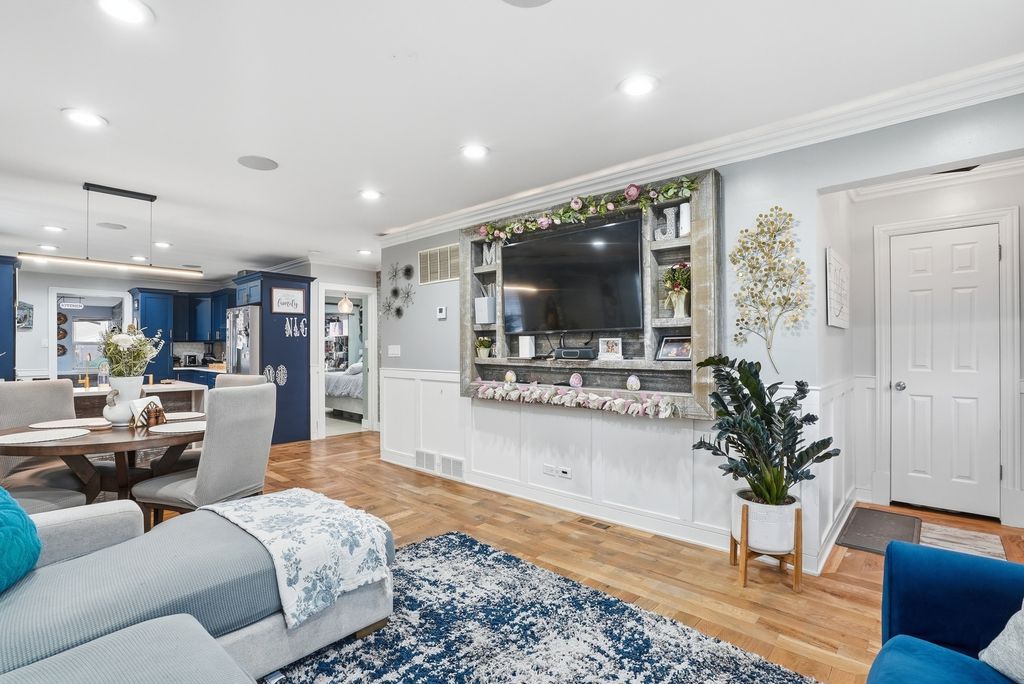 Welcome home to this beautifully maintained all-brick ranch. This 3-BED, 2-BATH gem has been thoughtfully updated by long-time owners and is truly move-in ready. Inside, you're immediately greeted by an abundance of natural light, gleaming hardwood floors, and elegant recessed lighting that create a warm, inviting atmosphere. The main living space flows seamlessly into the dining area and into what is truly the heart of the home, a show-stopping, designer like kitchen! Featuring rich custom navy cabinetry, sleek quartz countertops, and striking gold accents, this space perfectly blends modern elegance with functionality. High-end stainless steel appliances, including a built-in double oven, elevate both everyday living and entertaining. The statement gold farmhouse sink and thoughtfully designed layout make this kitchen as practical as it is beautiful, ideal for hosting, gathering, and creating unforgettable moments. The main level offers TWO well-appointed bedrooms, including a spacious primary retreat with a walk-in closet and custom built-ins. The beautifully renovated bathroom is a true showpiece, complete with floor-to-ceiling marble tile, gold fixtures, a soaking tub, and a glass-enclosed shower, bringing a spa-like experience right into your home. Downstairs, the finished lower level expands your living space with incredible versatility. It includes a second full bathroom, an additional bedroom, and a bonus room ideal for a home office, gym, or guest suite, perfect for entertaining or a potential in-law arrangement. Step outside to your private backyard oasis, thoughtfully designed for both relaxation and entertaining. Beautiful custom paver walkways wrap around the home, creating a seamless and elegant transition from the front yard to the backyard, perfect for hosting guests or enjoying quiet evenings outdoors. A spacious 2-car garage provides convenience, storage, and everyday practicality. Conveniently located near schools, public transportation, shopping, and dining, this home offers the perfect balance of comfort and accessibility. Don't miss your opportunity to make it yours!