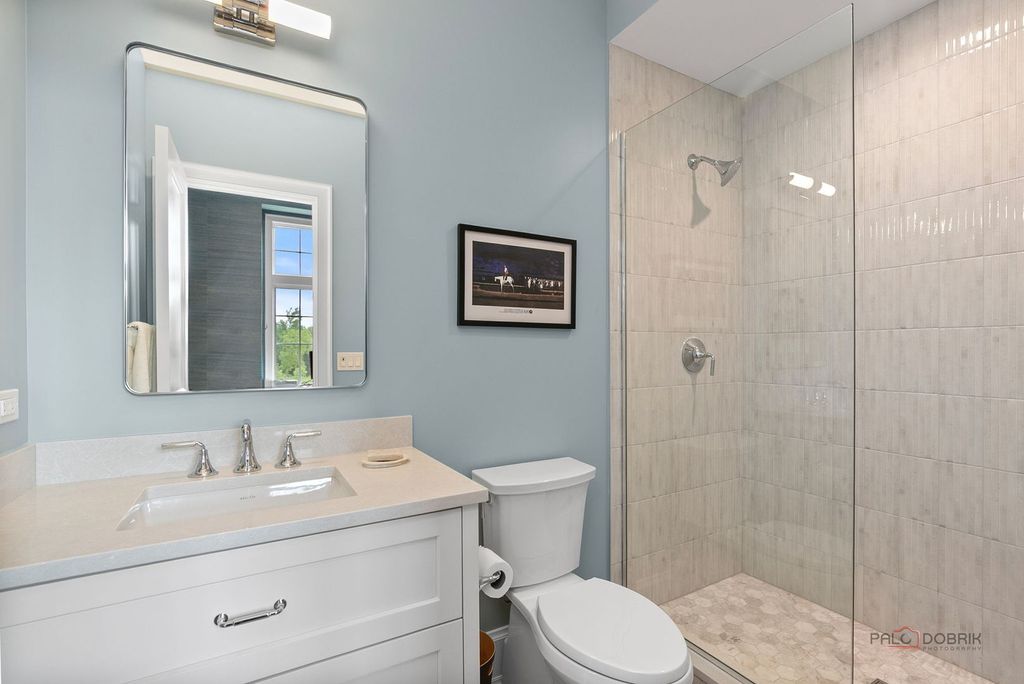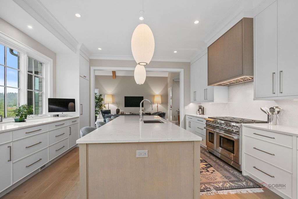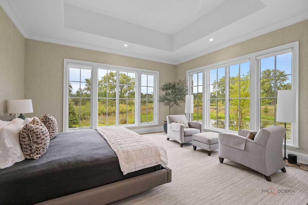 Enjoy elevated living in this professionally designed, move-in ready home located in The Preserve at Westleigh. With unobstructed views of Lake Forest Open Lands in a cul-de-sac setting, this custom-built residence blends luxury construction with high-end interior design by Tom Ferguson Interiors of Chicago. The owners enhanced the entire home with thoughtful upgrades, including custom window treatments and floating built-in cabinetry in the library, creating a polished and welcoming environment. As you enter the home, you are greeted by a vaulted family room with fireplace and beautiful views of the Open Lands. This room flows effortlessly into a spacious chef's kitchen and dining area with picture windows and access to the backyard-ideal for both everyday comfort and entertaining. The first-floor primary suite offers privacy and tranquility, complete with a large walk-in closet and spa-like bath. A separate library with views of the front yard, powder room, and practical mudroom/laundry room add to the home's functional layout. Upstairs, two en-suite bedrooms and a spacious loft provide flexible space, with a large carpeted attic space that offers great potential for storage or future customization. The full, unfinished basement includes plumbing for a full bath and offers a generous space for adding additional living areas. The owner has drawings available to finish the basement, including rec room, bedroom, full bath and storage. A custom patio just off the kitchen is set to be finished by summer, offering views of the 17-acre Carruthers Nature Preserve -- Lake Forest's newest accessible spot for birding and fishing, complete with scenic walking trails. All just minutes from Lake Forest's shopping, schools, train station, and parks, this home is an exceptional opportunity to enjoy beautiful new construction in a serene setting.
