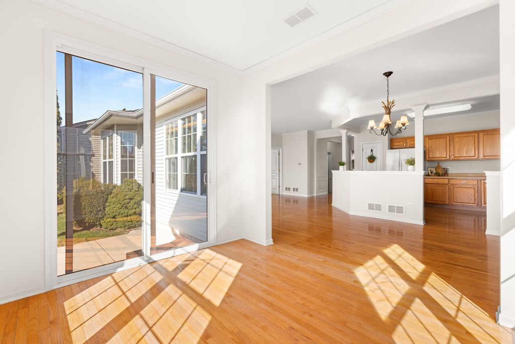 Welcome to this beautifully maintained Fox model ranch home in the highly sought-after 55+ active adult community of Del Webb Sun City Huntley. This bright and airy, move-in ready home features 2 bedrooms, 2 full bathrooms, a den, sunroom/garden room, full unfinished basement, and a 2-car garage, thoughtfully designed for comfortable living and easy entertaining. The open-concept main living area is highlighted by hardwood floors, crown molding, abundant natural light, and a cozy gas log fireplace. The kitchen, dining area, and sun-filled garden room flow seamlessly together, creating a warm and inviting space for everyday living and gatherings. The primary suite provides a private retreat with its own full bath, while the second bedroom, full bath, and versatile den offer flexible space for guests, a home office, or hobbies. A convenient main-floor laundry room with utility sink adds everyday functionality, while the full unfinished basement presents endless opportunities to customize additional living space or storage. Step outside to enjoy the concrete patio with a privacy fence and mature greenery, creating a peaceful and private outdoor setting. This well-cared-for home also features professionally cleaned carpets, landscaped grounds, and numerous updates including newer kitchen appliances, furnace, A/C, water heater, and a new roof, providing peace of mind for years to come. Residents enjoy an exceptional resort-style lifestyle at Del Webb Sun City Huntley, home to the award-winning Whisper Creek Golf Course, Jameson's Charhouse, two fitness centers, three pools, tennis and pickleball courts, scenic walking and biking trails, and over 100 clubs and activities in this golf-cart-friendly community. Conveniently located near shopping, dining, and I-90 in the charming Village of Huntley, residents enjoy farmers markets, holiday celebrations, and Summer Concerts on the Square. Move right in and start enjoying the incredible lifestyle Del Webb has to offer-don't miss this wonderful home, schedule your showing today!