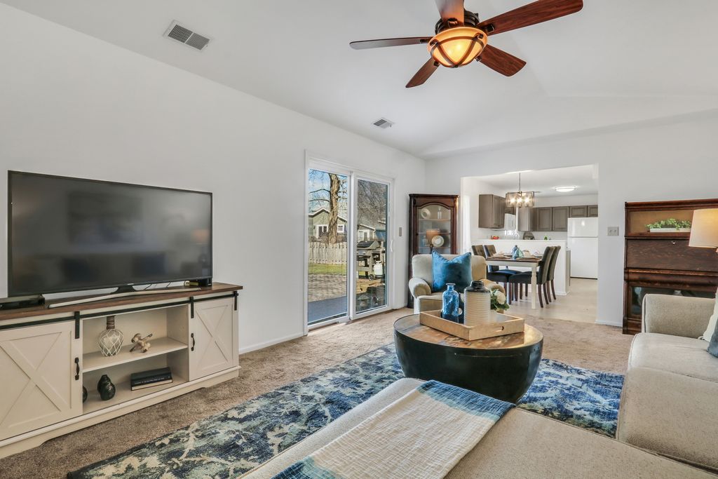 Welcome home to this stunning gem in highly sought-after Cambridge West-where charm, comfort, and thoughtful updates come together beautifully. From the moment you arrive, the inviting front porch sets the tone, offering the perfect spot to sip your morning coffee or unwind at the end of the day. Step inside and you'll immediately appreciate the fantastic, functional floor plan designed for both everyday living and effortless entertaining. The sun-filled living and dining rooms are warm and welcoming, featuring brand new carpet and an abundance of natural light that creates an airy, open feel throughout. The heart of the home is the spacious kitchen, complete with ample cabinetry, generous counter space, and a convenient eating area that overlooks the backyard-ideal for casual meals or gathering with loved ones. Just beyond, step outside to your private outdoor retreat where a beautiful brick paver patio provides the perfect setting for al fresco dining, summer barbecues, or simply relaxing under the stars. Back inside, the cozy family room invites you to unwind with its charming fireplace and comfortable atmosphere-perfect for movie nights or quiet evenings at home. A main-level half bath and laundry room add everyday convenience and complete the first floor. Upstairs, you'll find three generously sized bedrooms, including a spacious primary suite featuring its own private full bathroom. Two additional bedrooms and a well-appointed full bath provide plenty of space for family, guests, or a home office. This home has been thoughtfully updated for peace of mind, including a new roof and gutters in 2024, brand new AC, furnace, and hot water heater in 2025, as well as a new garage door in 2025. The kitchen and powder room were tastefully refreshed in 2019, adding modern touches to this already beautiful home. Perfectly located near parks and scenic bike paths, this home offers not only a wonderful place to live but a lifestyle to love. Truly move-in ready and filled with warmth and charm-this is one you won't want to miss!