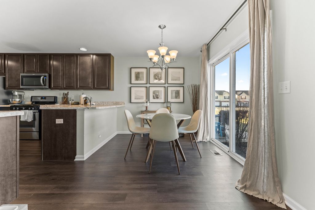 This is the kind of starter home that just feels right. Not outdated. Not overdone. Just a clean, easy space you can actually see yourself living in. Walk in and the natural light hits right away, with hardwood floors that give the living room that warm, cozy feel. The kitchen has solid cabinet space, stainless steel appliances, and flows straight into the dining area with access to the backyard. It's simple, open, and just works for everyday life or having people over. Upstairs, the primary suite gives you your own space to reset with a walk-in closet and private full bath. The second bedroom is right next to another full bathroom, and having laundry on the second floor just makes life easier. The basement adds extra space with LVP flooring, perfect for a home office, gym, or just a chill hangout spot. You've also got an attached two-car garage and plenty of storage. Set in a quiet, welcoming neighborhood, this home is low maintenance, updated where it matters, and just easy. If you've been waiting for something that feels like a smart first move without feeling overwhelmed, this is it.