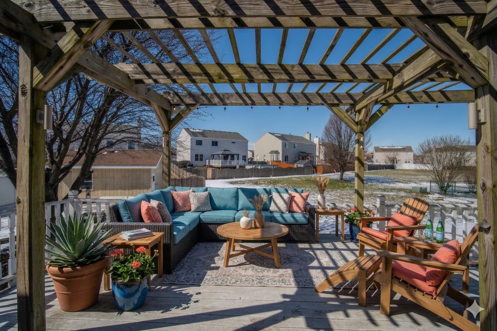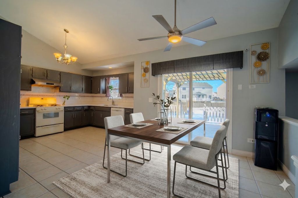 Welcome home to this spacious split-level gem, perfectly located on a quiet street with a park and playground just steps from your backyard. Offering 3 bedrooms plus an additional room in the basement and 2.5 baths, this home provides space and flexibility for today's lifestyle. Enjoy the open-concept main level with vaulted ceilings, a bright living area, and a large kitchen and dining space overlooking the backyard and peaceful park setting. Vinyl flooring runs throughout for easy living. Upstairs, the primary suite features vaulted ceilings, a walk-in closet, and a private bath with dual vanities and a soaking tub, along with two additional generously sized bedrooms and a full hall bath. The lower-level family room is perfect for relaxing, complete with a cozy wood-burning fireplace and half bath. The basement offers laundry, storage, a bathroom rough-in, and a versatile bonus room ideal for a home office or guest space. Step outside to enjoy the backyard featuring a deck with pergola that leads down to a patio, creating additional space for outdoor entertaining. Recent updates include water heater (2025), roof (2017), furnace and A/C (2019), and new washer and dryer.