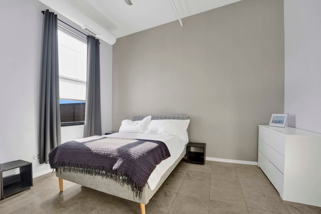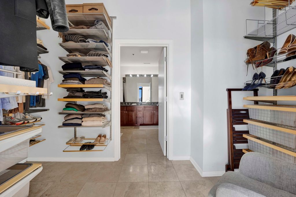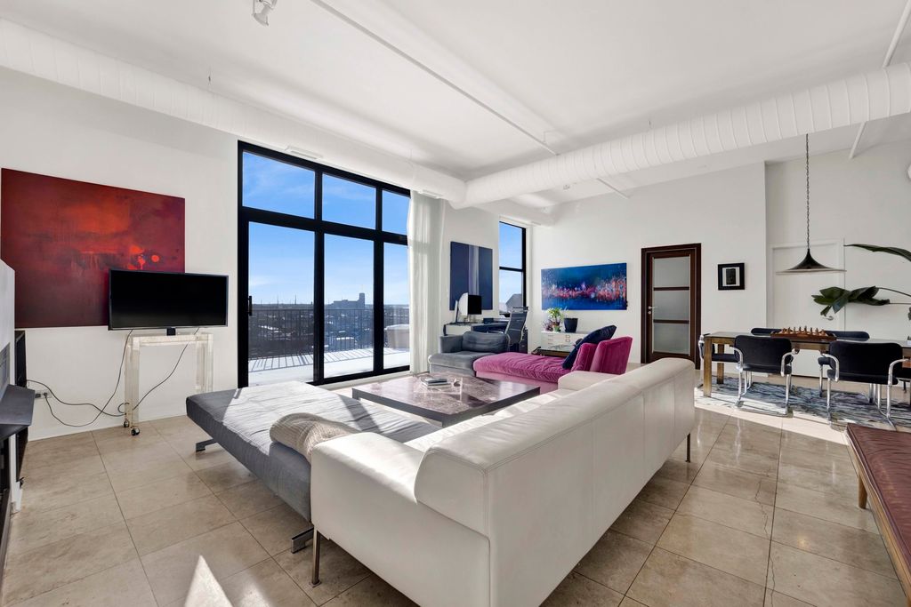 This stunning former three-bedroom, now two-bedroom, 2.5-bath penthouse loft offers exceptional space, style, and comfort. Soaring ceilings frame an expansive 1,000-square-foot living area, complemented by elegant limestone flooring throughout. The open-concept layout is anchored by a cozy gas fireplace, creating an inviting setting for both everyday living and entertaining. The updated kitchen features crisp white cabinetry and sleek quartz countertops, seamlessly blending form and function. Both bedrooms include heated floors, while the spacious primary suite serves as a true retreat with a spa-inspired bath offering dual vanities, a separate shower, a soaking tub, and heated floors for added luxury. Additional highlights include a full laundry room and a separate storage room. Step outside to your private 600-square-foot terrace and take in breathtaking sunset views-an exceptional outdoor extension of the home. Located in University Village, this residence is surrounded by beautifully maintained parks and green spaces, including a dog park and running track, offering a rare balance of city living and outdoor enjoyment. The HOA provides cable, internet, water, trash service, gym access, and door staff for convenient, low-maintenance living. One indoor parking space is included.