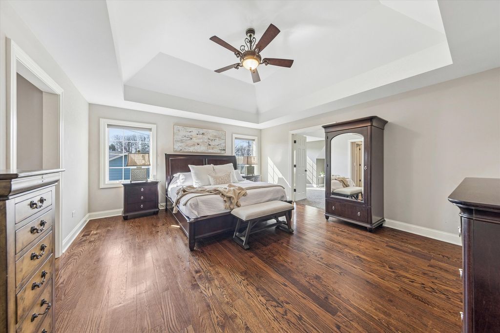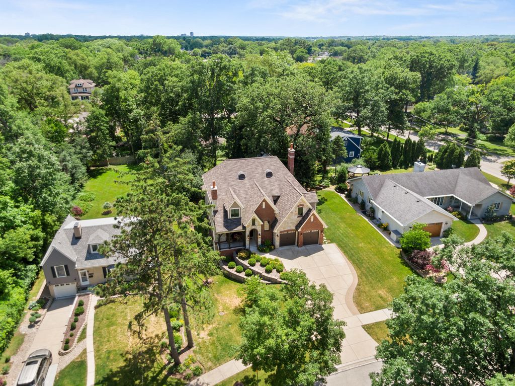 Built in 2011, this one-of-a-kind custom home, nestled on one of Lombard's most picturesque streets, exudes charm and sophistication from the moment you arrive. The curb appeal is unforgettable, with a striking custom front door and an inviting porch that warmly welcomes you in. Every detail has been thoughtfully curated to impress: from the copper exterior accents and lannon stone, custom exterior masonry fireplaces to the interior gleaming hardwood floors, elegant arched doorways, exquisite custom built-ins, and two stunning masonry fireplaces. Soaring ceilings elevate the space, creating an airy, grand ambiance. The first floor is as functional as it is beautiful, featuring a versatile office/ bedroom with woodburning fireplace, a large light-filled family room with a masonry fireplace, gourmet kitchen with eating area that is equipped with high-end appliances-perfect for both cooking and entertaining plus a large formal dining room area. The family room and kitchen eating areas have french door access to the private yard with amazing paver patio and gazebo. Off the front hallway is a full bathroom and mudroom which includes built in lockers and direct access to the two car attached garage. Upstairs, you'll find a luxurious master suite with vaulted ceilings, a spa-like ensuite bathroom, and its own private space-a true retreat or 2nd office. Plus you'll find two additional bedrooms and an oversized laundry room. The custom-finished basement is a standout feature, with full-size windows that bring in natural light and views of the backyard. This level also includes an additional bedroom or workout room plus a full bath, adding even more flexibility to the home's thoughtful design. Located just steps from downtown Lombard, the train station, and the Great Western Trail, this home offers not just a place to live, but a lifestyle. Don't miss your chance to experience the perfect blend of charm, functionality, and location!