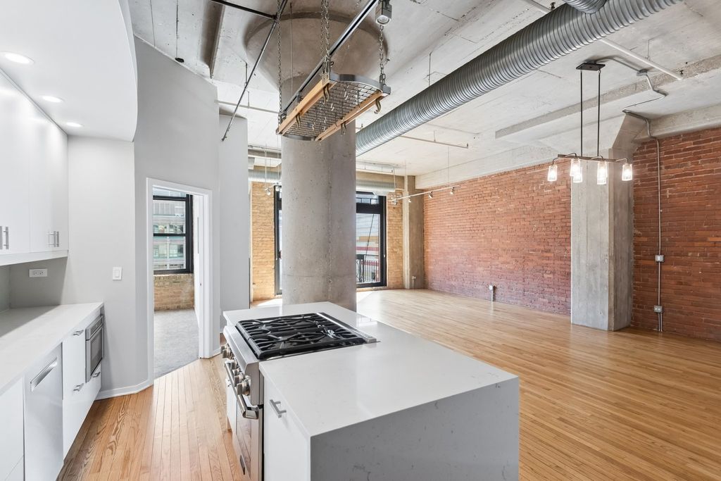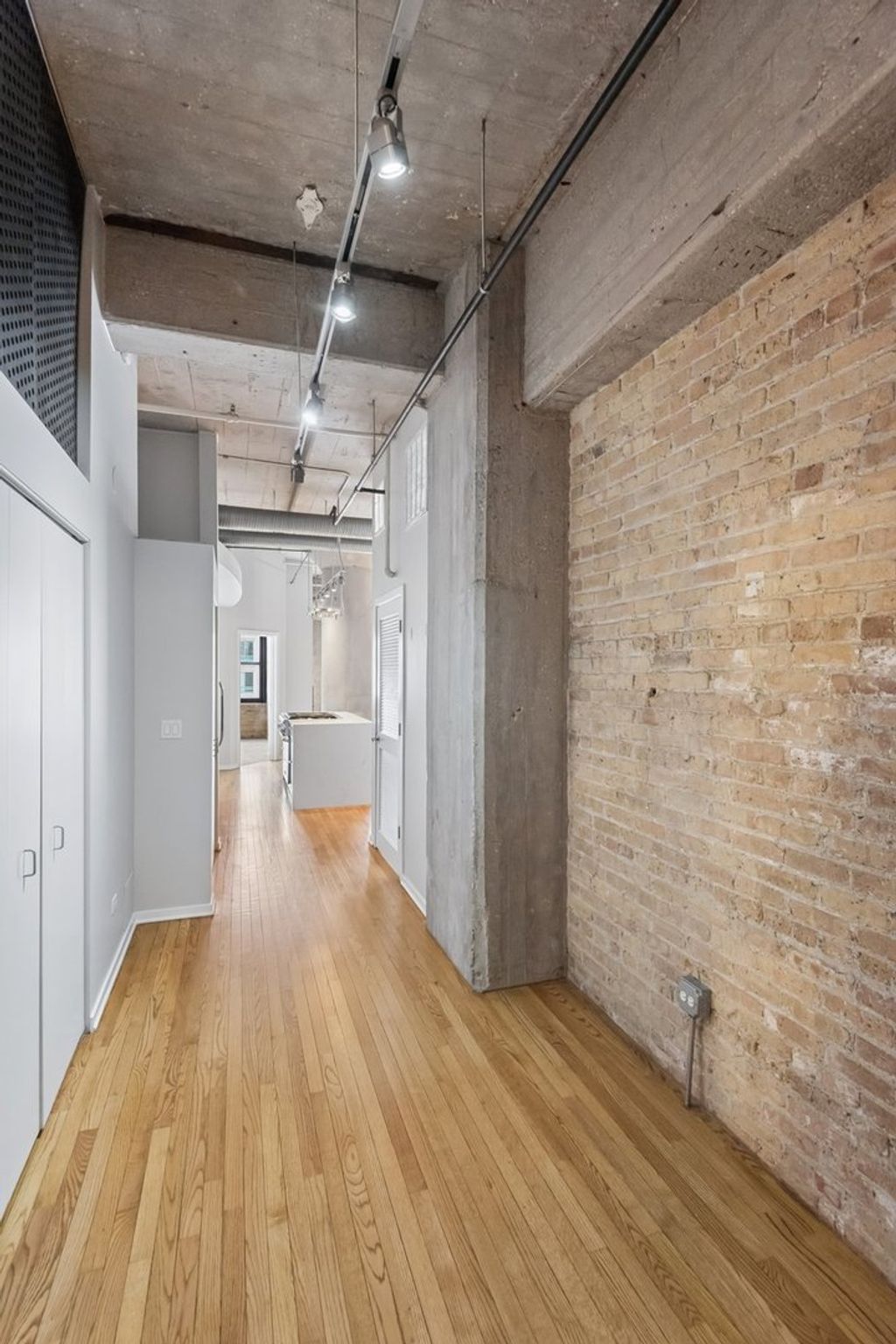 South-facing, beautifully updated 2 bed, 2 bath concrete loft offering over 1,600 square feet of bright, open living space. This home features two fully enclosed bedrooms, each with spacious custom closets. The thoughtfully designed floor plan showcases soaring 12-foot ceilings, gorgeous hardwood floors, a gas fireplace, exposed brick, and classic loft elements including columns and ductwork. A full wall of south-facing windows floods the space with natural light throughout the day. The updated kitchen features a modern backsplash, large island, generous prep space, and ample storage including a pantry. Just off the living area, a private balcony provides the perfect setup for grilling and outdoor seating. The primary suite includes a stunning, spa-inspired bathroom with double vanities and a beautifully designed walk-in shower. Located in The Sexton, one of River North's premier buildings, residents enjoy 24-hour door staff, on-site management, a landscaped courtyard and sundeck, fitness center, dry cleaner, storage, and a bike room. Unbeatable location just steps from East Bank Club, top restaurants, shopping, the Merchandise Mart, and convenient access to highways, buses, and the Brown, Purple, and Red lines. One garage parking space available for $25,000 with an EV charging station.