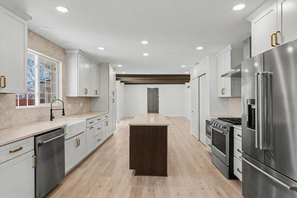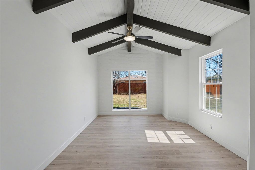 Welcome to one of Urbana's most exciting and up-and-coming neighborhoods, just steps from the newly renovated Urbana Country Club, where resort-style amenities, premier golf, and elevated lifestyle living are redefining the area. This fully renovated 4-bedroom, ~3,000 sq ft home blends modern design, character, and flexibility. The open-concept layout features wide-plank flooring, abundant natural light, and exposed beam ceilings that create a warm, elevated feel. The main living space is anchored by a statement tiled fireplace, while multiple living areas provide versatility for today's lifestyle. The redesigned kitchen is a standout with a large island, custom cabinetry, quartz countertops, designer hardware, and high-end stainless appliances including a gas range with vent hood, ideal for everyday living and entertaining. A vaulted-ceiling flex space with beams and a brick fireplace offers the perfect setup for a secondary living area, recreation space, or a private in-law suite (Bedroom 4) with its own exterior access. The primary suite delivers a true retreat with a fully built-out walk-in closet and a spa-inspired bath featuring a custom tiled walk-in shower, black-framed glass doors, dual vanities, and upscale finishes. Additional updates include all new Pella windows, mechanicals, a fenced backyard, stamped concrete patio, and expanded concrete driveway space, along with a dedicated office/study filled with natural light. This home offers a rare combination of thoughtful renovation, flexible living space, and a prime location in one of Urbana's fastest-growing areas.