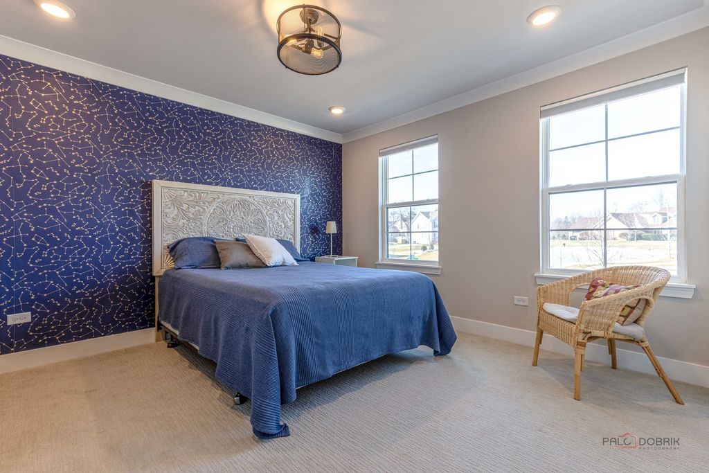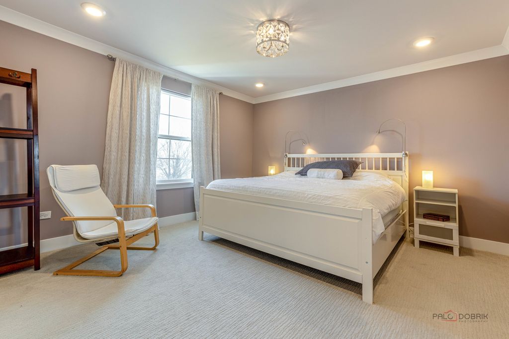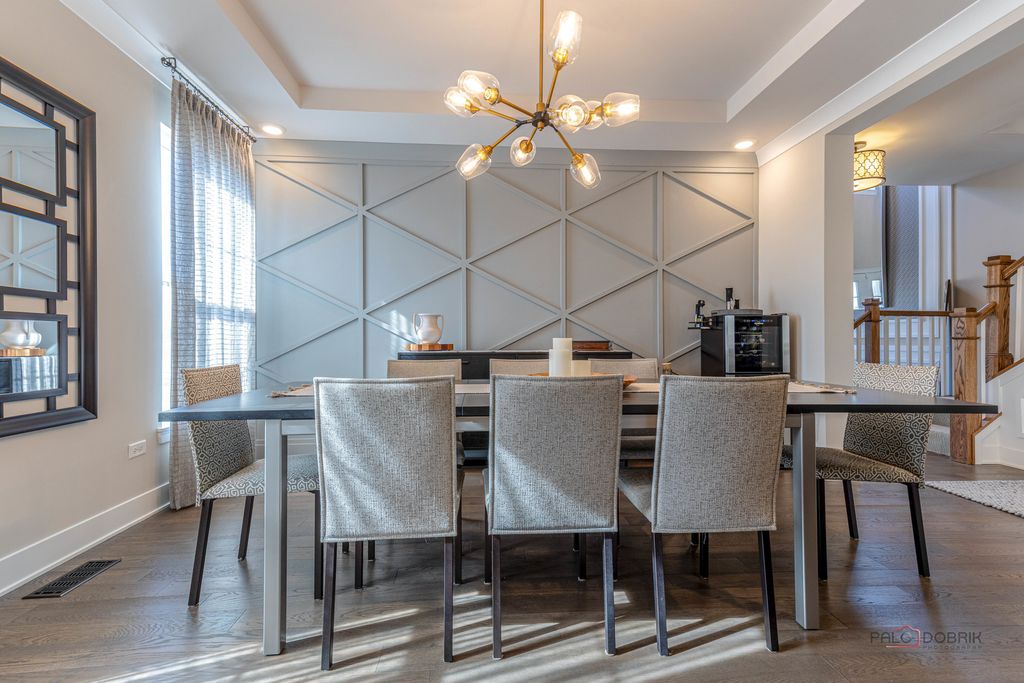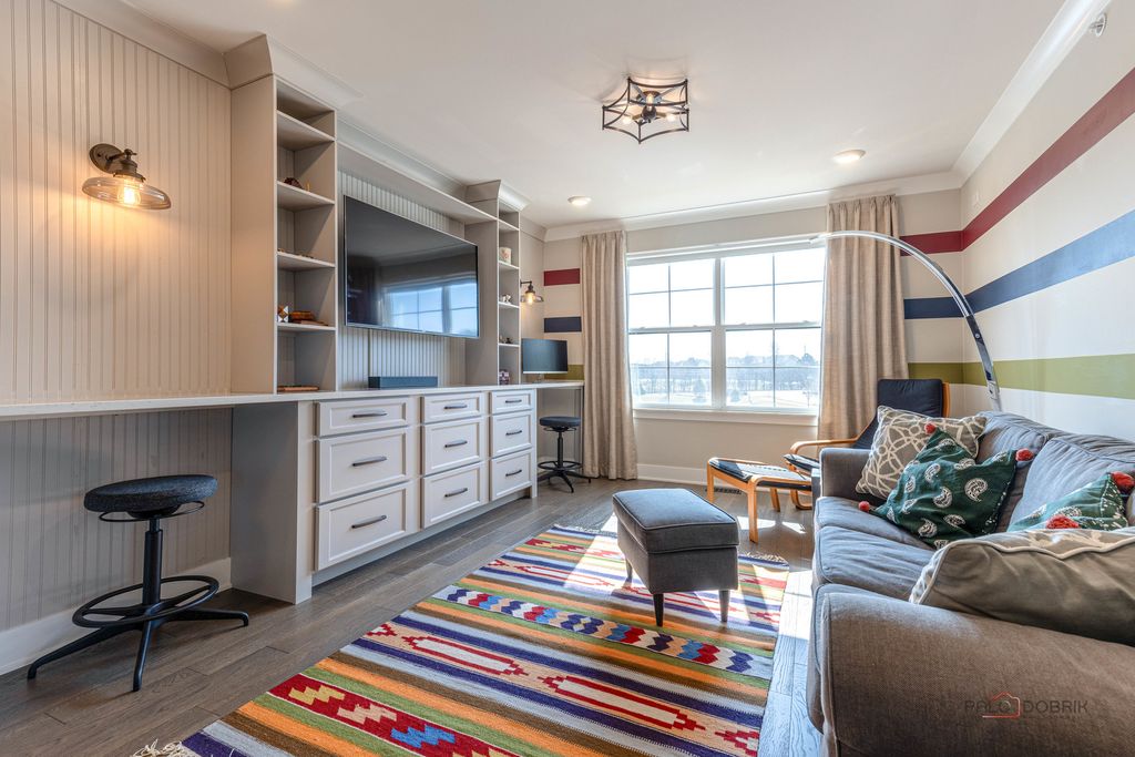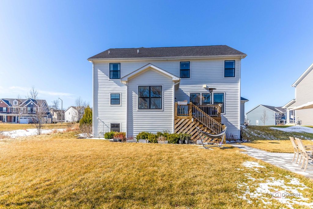 Welcome to this stunning model home in the desirable Avery Ridge subdivision, where every detail has been thoughtfully designed and upgraded to perfection. This beautifully appointed four-bedroom, 2.1-bath residence showcases top-of-the-line finishes and elegant wainscoting throughout, offering both style and sophistication. Step inside to a grand two-story foyer that sets the tone for the home's impressive layout. The main level features a private office with double French doors, complete with custom built-in shelving and bookcases-perfect for working from home. Entertain with ease in the spacious dining room, conveniently located just off the kitchen. The gourmet kitchen is a true showstopper, boasting stainless steel appliances, a double oven, a large island with breakfast bar, and a walk-in pantry. It flows seamlessly into the bright eating area and inviting sunroom, where vaulted ceilings and access to the deck create the perfect space to relax or gather. The living room offers serene views of the backyard and fills with natural light. Upstairs, a versatile loft with built-in desks and shelving provides additional living or workspace. The luxurious primary suite features a vaulted ceiling, a spa-like ensuite with dual sinks and a large shower, and an impressive walk-in closet with custom built-ins. Three additional bedrooms and a full bath complete the second level. The full unfinished English basement offers endless possibilities for customization. Outside, enjoy the beautifully landscaped backyard with both a deck and patio-ideal for outdoor entertaining. All of this in a fantastic location close to downtown Lake Zurich, with easy access to shopping, dining, and more. This exceptional home truly has it all!