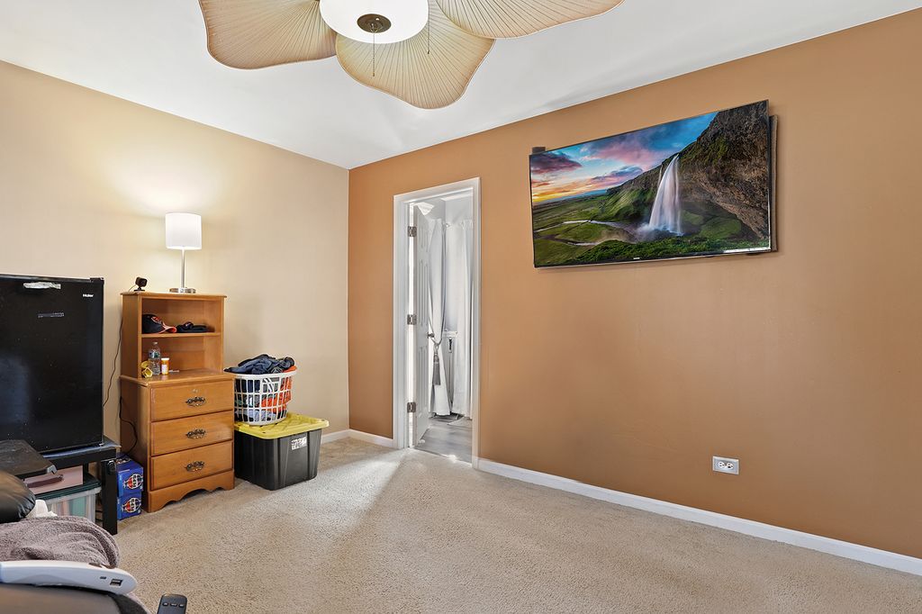 Welcome to the cul-de-sac! This charming, well-maintained home, nestled in the sought-after Country Glen Estates, is ready for new owners to make it their own. Once you enter this home, you will feel the comfort and open space this home provides as it welcomes you to a spacious layout offering generous living areas, filled with natural light. Upon entering, you will find a flex space that can serve as a formal dining or living room, a first-floor study, or any space needed. It can also be made quiet with the practical French doors. At the heart of the home is the expansive eat-in kitchen, which features stainless steel appliances and ample cabinet and counter space. Open to the kitchen is the two-story family room, which features an open upstairs hallway, creating a warm and airy atmosphere. With the flip of a switch, the fireplace is turned on to make things a little extra cozy. Also on the main level you will find the primary bedroom in the back of the home, offering quiet and tranquility along with an attached, updated en suite bath. Upstairs there are three additional, generously sized bedrooms with abundant closet space. The massive, finished basement is where the entertaining happens. Downstairs you will find a theater space, complete with theater seating, a projector, and a painted screen. There is also plenty of space for gaming, play areas, storage, crafting space - the possibiities are endless. Also included is a separate storage room as well as exterior access to the outside which is great for Costco runs! Outside, enjoy a sizable yard perfect for relaxing, gardening, or hosting gatherings. Whether you're sipping your morning coffee or enjoying a summer evening, the substantial deck and gazebo add to the ambiance. A shed in the corner of the yard provides additional storage. Truly move-in ready with updates including brand new carpet (2026), roof (2023), HVAC (2024) and Hot Water Heater (2026). Conveniently located near schools, parks, shopping, and major roadways, this home offers both tranquility and accessibility. Don't miss your chance to own a wonderful property in a desirable Joliet location-schedule your showing today!