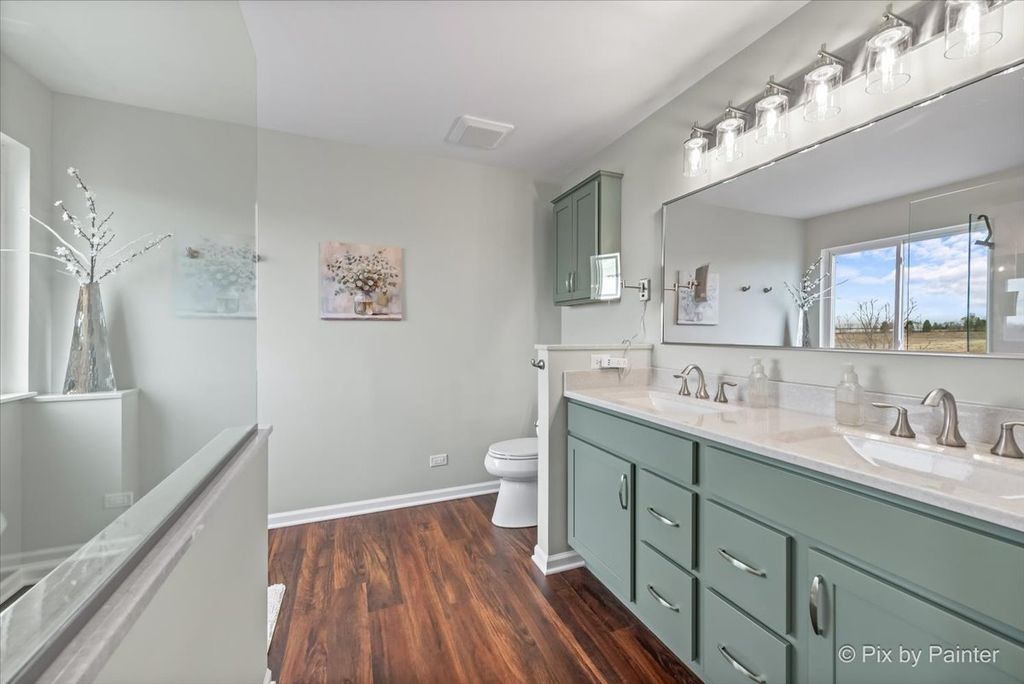 MOVE-IN READY WITH QUALITY UPGRADES, FLEXIBLE LIVING SPACE, AND PEACEFUL OPEN FIELD VIEWS IN THE MEADOWS OF WEST BAY. Everything in this home chosen with intention, from the pot filler in the kitchen to the rainfall shower to the custom workshop in the basement, because this is a home built around quality. Step into 3,182 sq ft of thoughtfully designed living in the Meadows of West Bay subdivision. TWO-STORY FOYER with CATHEDRAL CEILINGS and bamboo hardwood floors on the main level and staircase flow into LVP FLOORING throughout the upper level including bedrooms, bathrooms, and loft. The renovated kitchen features QUARTZ COUNTERTOPS, custom solid wood cabinetry with 42" uppers, stone backsplash, under-cabinet lighting, BOSCH SLIDE-IN GAS RANGE with EXTERIOR-VENTED RANGE HOOD and POT FILLER, Bosch dishwasher, and WALK-IN PANTRY. Newly remodeled bathrooms feature ONYX SOLID SURFACE custom cabinetry and COMFORT-HEIGHT TOILETS throughout. MAIN FLOOR LAUNDRY with front-load washer and dryer, built-in cabinetry included. The primary suite offers vaulted ceilings, open field views, a RAINFALL SHOWER with low-profile entry and custom glass enclosure, and a DREAM WALK-IN CLOSET with built-in lighting and dedicated mirrored jewelry cabinet. Two additional bedrooms and open LOFT complete the upper level. The semi-finished basement adds a bedroom, full bath, CRAFTING STUDIO with counters and cabinetry, WORKSHOP with custom cabinets and pegboard, LVP flooring, recessed lighting, finished ceilings, plus extensive built-in storage and an additional French door refrigerator. WHOLE HOME WATER FILTRATION, softener, and reverse osmosis system throughout. NEW HIGH-EFFICIENCY FURNACE AND AC (March 2026, 10-year warranty). Pella front windows and door (5 years). INSULATED GARAGE DOOR WITH WINDOWS (2 years), dedicated electrical panel, pegboard walls, pull-down attic stairs, and snowblower included. SMART HOME features include Ring doorbell and Nest thermostat. Invisible pet fencing included (requires reactivation). Stamped concrete patio, raised garden beds, custom paver driveway and walkways, ALUMINUM FENCED backyard on .28-ACRE LOT with open field views and no rear neighbors. WATER RIGHTS INCLUDED for Wonder Lake, the largest privately owned manmade lake in Illinois. Minutes to Wilmot Mountain skiing, Lake Geneva, hiking trails, and fishing.