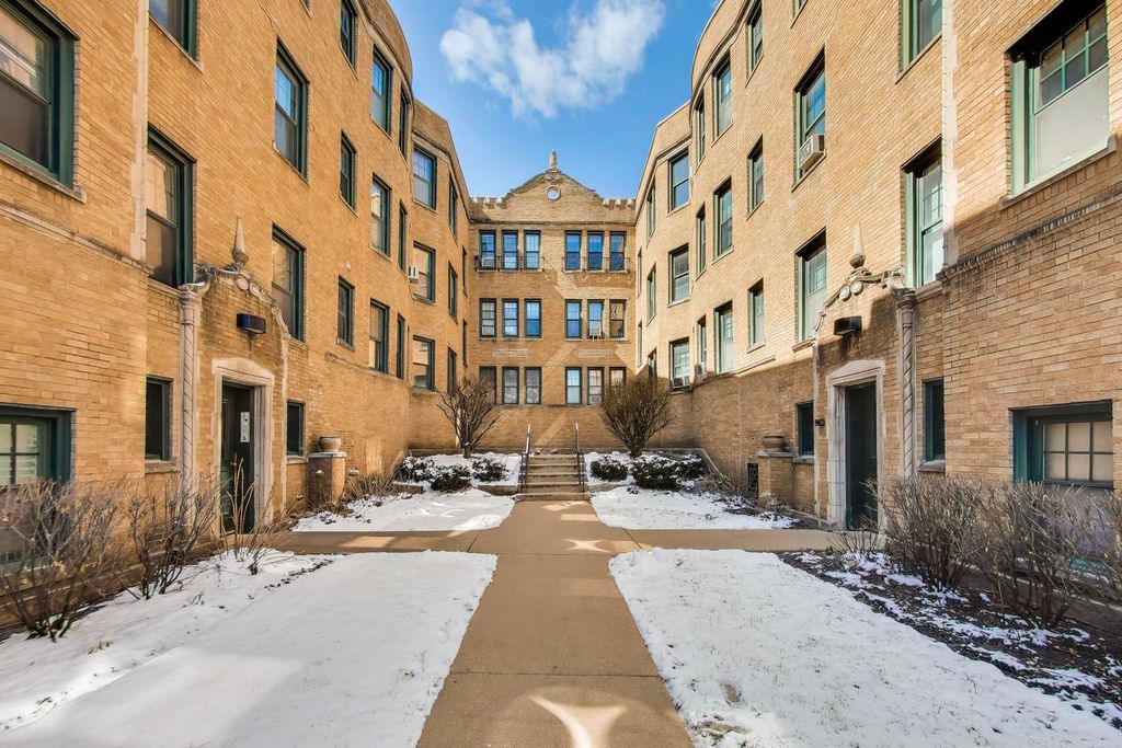 Experience the perfect blend of vintage soul and modern luxury in this sun-drenched, top-floor 2BR/1BA condo in Southeast Evanston. This unit has been meticulously updated for the 2026 market, featuring a stunning open-concept living area anchored by warm exposed brick walls and newly refinished hardwood floors throughout. The kitchen is a chef's delight with contemporary cabinetry, sleek countertops, and a full suite of stainless steel appliances. Rare and highly coveted in-unit laundry provides ultimate convenience. Both spacious bedrooms offer peaceful views of the professionally landscaped courtyard and are freshly painted in a modern, neutral palette. Situated on a quiet, residential one-way street, you are just steps from the CTA (Red, Purple, and Yellow lines), Metra, and the Northwestern shuttle. Enjoy easy weekends with a park and playground directly across the street and local favorites like Peckish Pig and Sketchbook Brewing just a short stroll away. Well-managed courtyard building. Monthly assessments include heat, water, and gas. Pet-friendly (dogs/cats welcome) with dedicated storage and bike lockup in the basement. Move right in and enjoy Evanston living at its finest!
