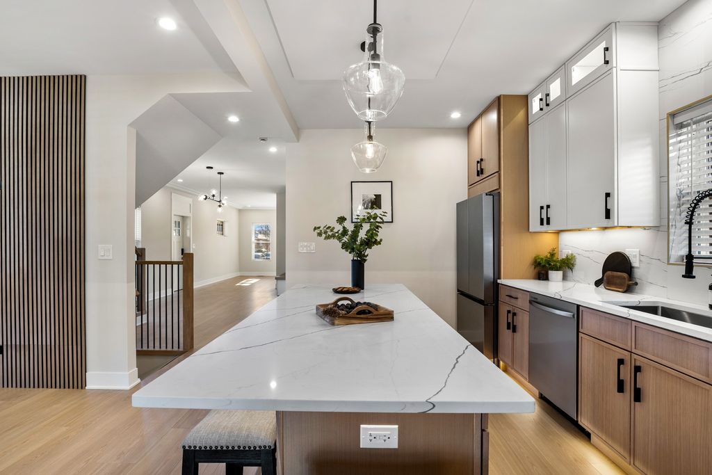 Stunning Fully Rehabbed Bungalow in the Sought-After O.A. Thorp School District of Jefferson Park. Welcome home to this beautifully reimagined 4-bedroom, 4-bathroom bungalow offering the perfect blend of timeless character and modern luxury. Completely renovated from top to bottom, this home features spa-like bathrooms with designer fixtures and hands-free toilets, paired with luxury wood-vinyl flooring throughout for both style and durability. The main level showcases a semi-open concept layout with a custom-designed kitchen, upper and lower lighted soft close cabinets, complete with a large island, breakfast area, and high-end finishes-ideal for both everyday living and entertaining. The inviting living room is filled with natural light and charm, highlighted by three original antique stained-glass windows and recessed can lighting throughout. A functional mudroom adds everyday convenience. Upstairs, you will find generously sized bedrooms including a private primary suite with a walk-in closet and beautifully appointed en-suite bath. Additional bedrooms offer ample closet space; plus extra storage located in the second-floor mechanical room. The high-ceiling lower level expands your living space with a massive family room, a full bathroom, and a show-stopping laundry room. There is also space to create two additional bedrooms, making this home ideal for larger households or multi-generational living, along with abundant storage in the basement mechanical room where you will find a tankless water heater. Step outside from the kitchen through sliding doors to a huge, covered deck overlooking the backyard, perfect for relaxing or hosting gatherings. The property also includes a 3-car garage with 8-foot doors ideal for pickup trucks or vans and its own 100-amp electrical panel, making it ready for an electric vehicle charging station. Located close to restaurants, shopping, public transportation, and expressways, this home offers unmatched convenience in one of Jefferson Park's most desirable neighborhoods. Truly move-in ready just unpack and start enjoying your home and your time with family, not renovations.