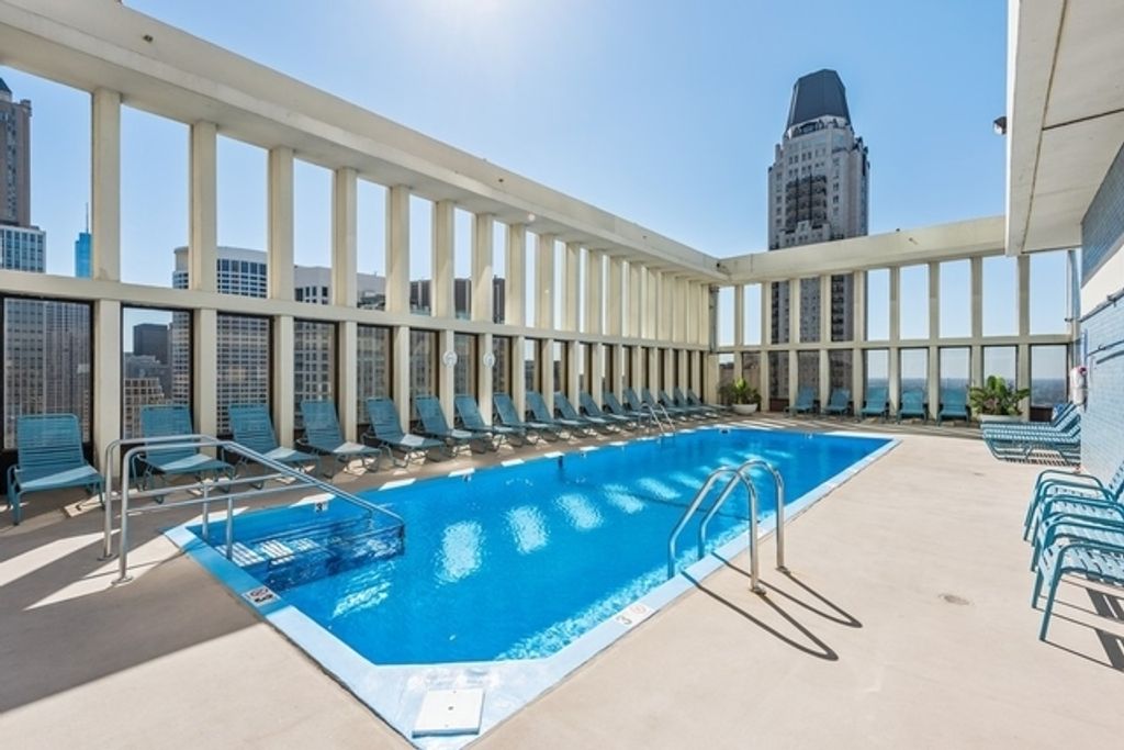 A bright and inviting, corner 1 bedroom, 1 bathroom condo in the heart of the Gold Coast! The open floor plan offers a well-appointed, modern kitchen and island with counter seating. Floor to ceiling windows surround the spacious living room and dining room spaces. The large windows continue into the full size bedroom which is finished with a custom closet buildout. The bathroom has been updated to match the designer finishes of the kitchen. Stacking in-unit laundry. Dogs & cats welcome. Full amenity building with 24hr door staff, on-site management/engineer, fitness & party rooms, and rooftop pool with breathtaking 360 city views. Located between Michigan Ave. and Rush St., restaurants, retail, and the lakefront are within a quick stroll from your front door. Leased parking is available.
