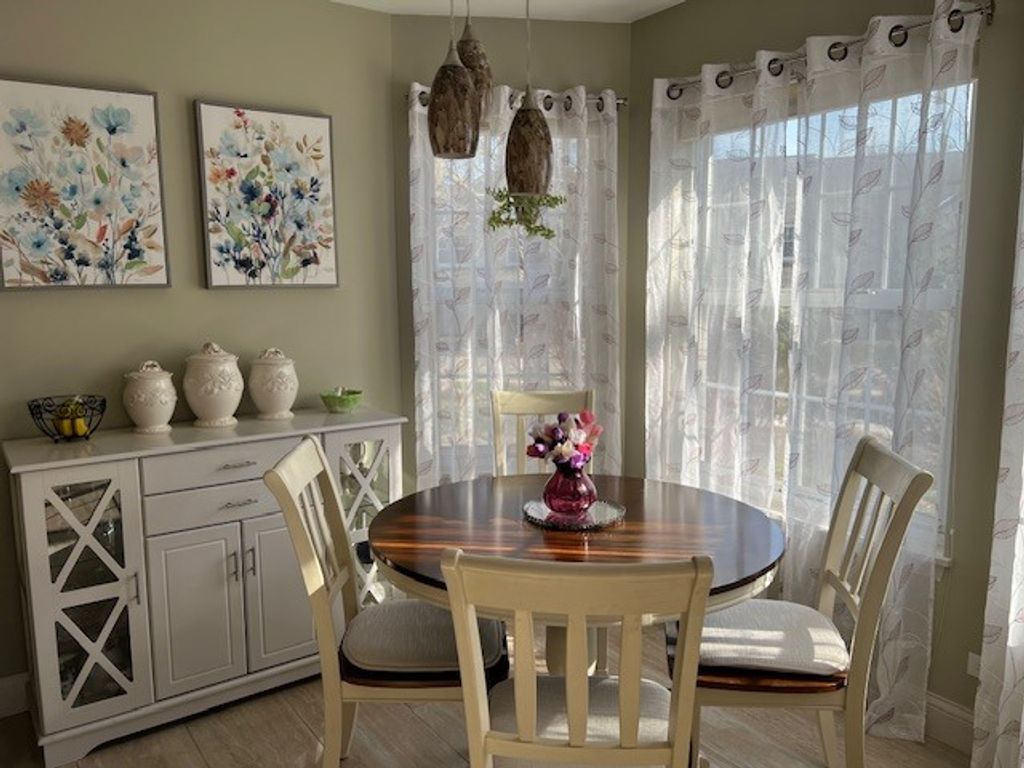This stunning end-unit townhome offers the perfect blend of style, space and natural light. Soaring vaulted ceilings create an open, airy feel, while an abundance of oversized windows fills the home with sunshine from every angle. The inviting living area is anchored by a beautiful fireplace, adding warmth and charm to the space. A versatile den on the main floor provides the ideal space for a home office, reading nook or flex room to suit your lifestyle. The kitchen is both functional and elegant, featuring gleaming granite counters, SS appliances and a lovely bay window that creates the perfect spot for casual dining or morning coffee. There is an additional space for more formal dining. Upstairs, you'll find three spacious bedrooms, including a serene primary retreat, along with an elegant full bathroom designed with comfort and sophistication in mind. With its premium end-unit location, thoughtful upgrades, and light-filled design, this home truly stands out as a refined and comfortable place to call your own.