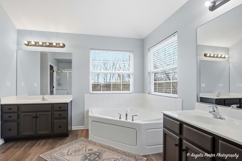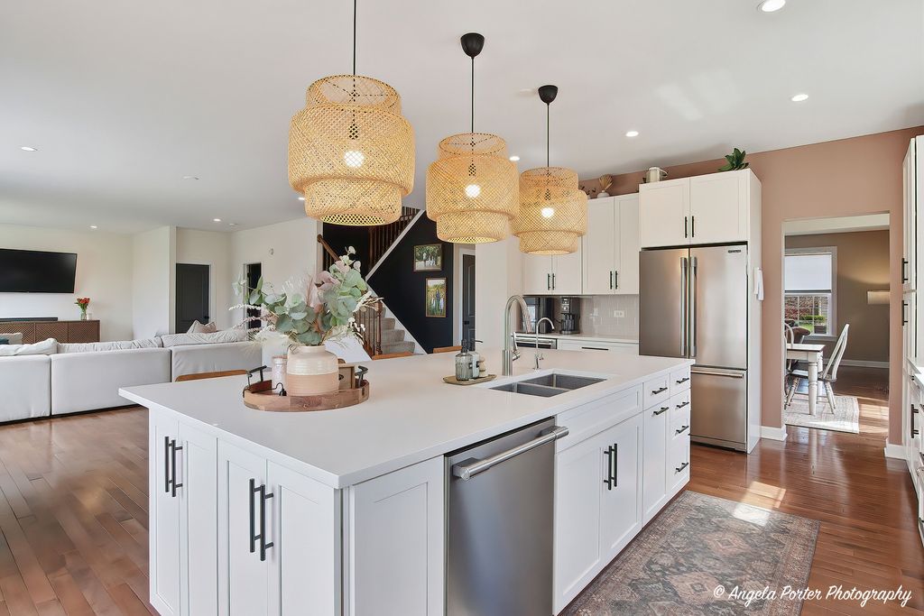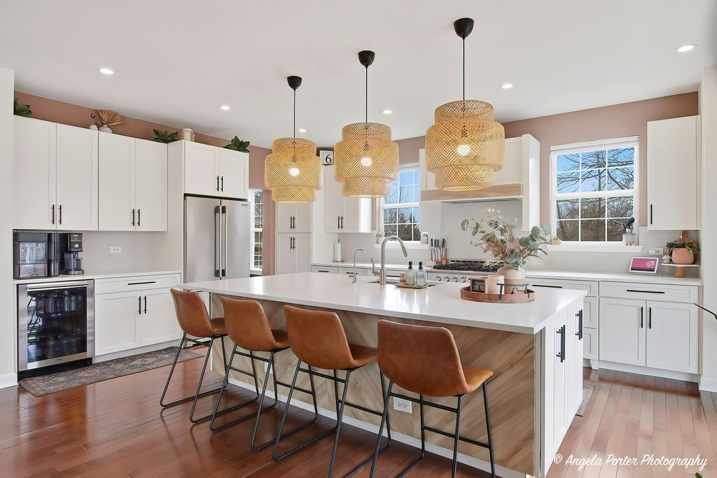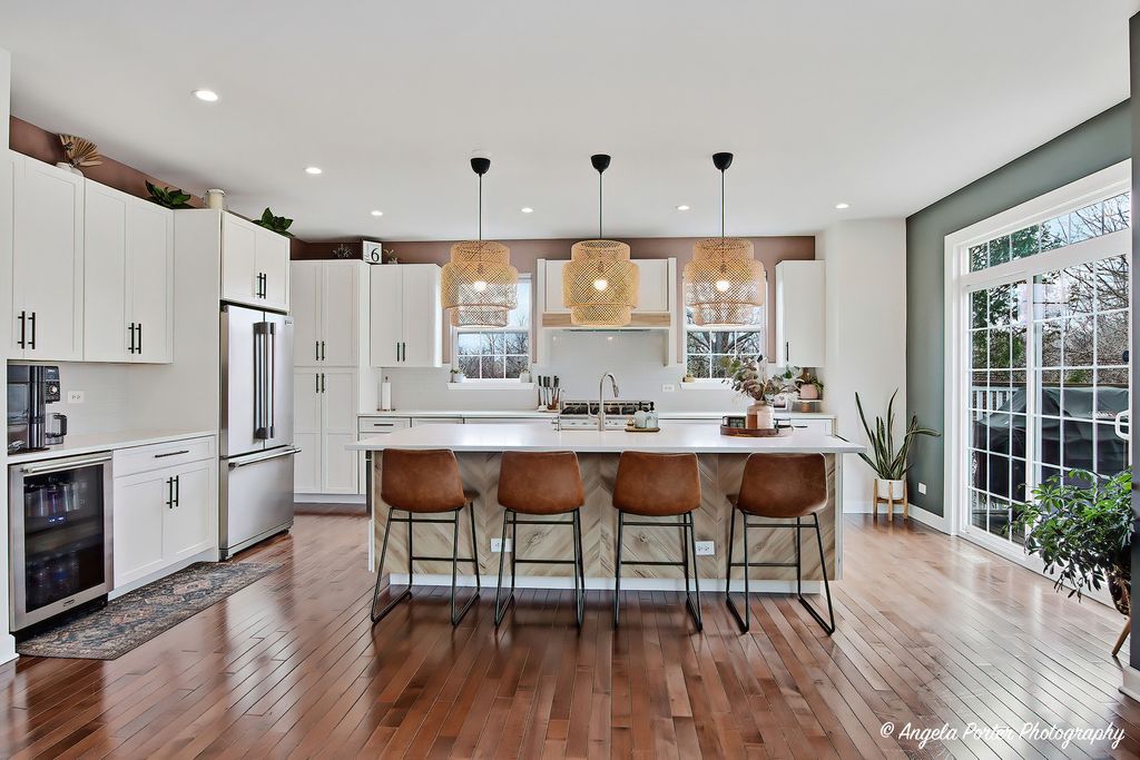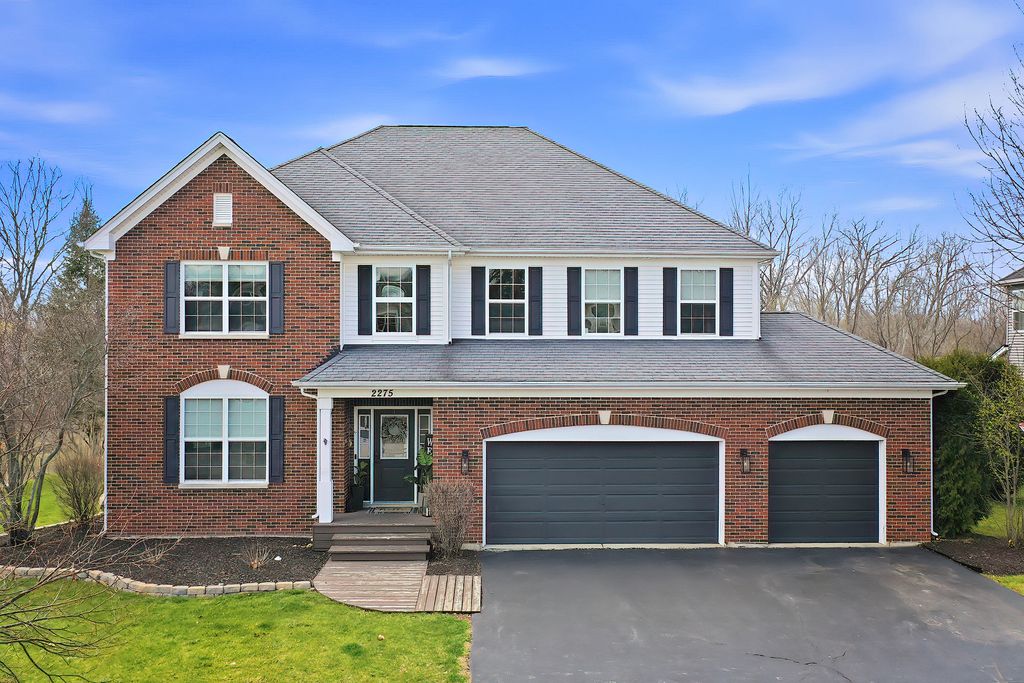 Welcome to 2275 Walnut Glen Boulevard in Island Lake - where sunlight pours in, sunsets steal the show, and every space just feels good. Set on a premium lot with only one side neighbor and peaceful pond views, this better-than-new home has been beautifully remodeled and is ready to be enjoyed from day one. Step inside to soaring ceilings, gleaming hardwood floors, and an open layout that feels both airy and inviting. The stunning white kitchen is the heart of the home, featuring an oversized island, gorgeous cabinetry with pull-out drawers, stainless steel appliances, and a seamless flow into the family room-perfect for everyday living and gathering with the people you love. Walls of windows bring in incredible natural light and frame those golden hour views you'll never get tired of. Upstairs, the spacious primary suite offers a true retreat with two walk-in closets and a spa-like bath, while three additional generously sized bedrooms, a remodeled hall bath, loft space, and convenient second-floor laundry complete the level. The full basement with deep pour, 9-foot ceilings offers endless potential for even more living space. Outside is where this home really shines-fenced yard, firepit, hot tub, and those unforgettable sunsets reflecting off the pond create the ultimate space to unwind or entertain. Located in highly sought-after McHenry schools, this home is the perfect blend of comfort, style, and that easy, happy feeling you've been looking for.