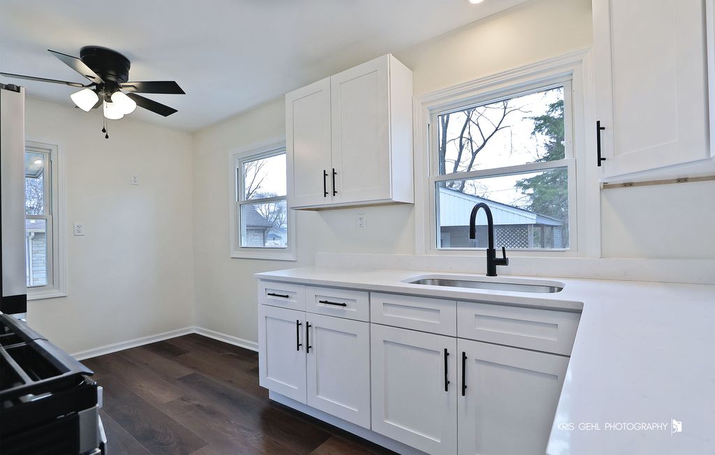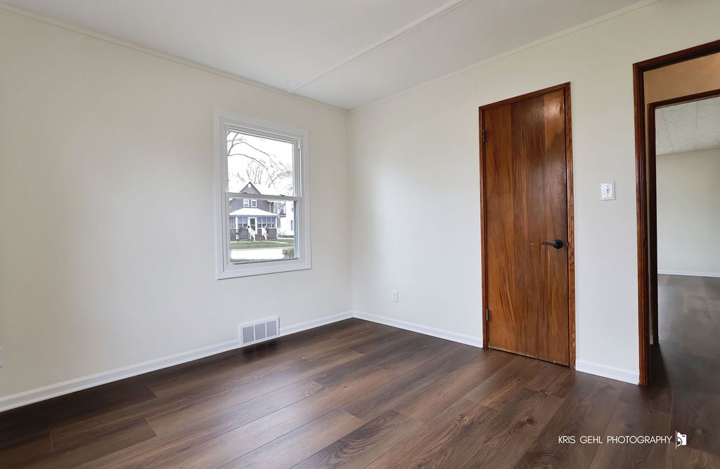 This charming home, which sits on a nice-sized lot, has been updated from the flooring to the plumbing and everything in between. This 3-bedroom home has 2 bedrooms on the main floor and one in the basement. A new egress window was added to create the third bedroom. Luxury vinyl added throughout. The kitchen has new cabinets, counters, and appliances, including a five-burner range with a griddle, with room for a breakfast or corner table. Both bathrooms have new shower surrounds, toilets, vanities, and new plumbing throughout. Many windows are new, as are the trim, electrical panel, furnace, water heater, and washer and dryer. Interior and exterior freshly painted. Also, replaced the sewer line all the way to the alley. The home will include a bag of grass seed so the new homeowner can grow the grass back after the sewer line work. There is also a long driveway, a one-car garage with a covered area perfect for enjoying a warm day, and a storage loft. This home is ready to be loved by the next homeowner.