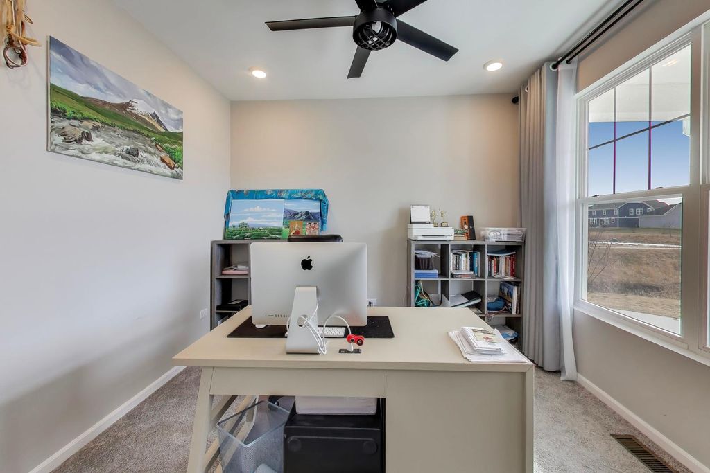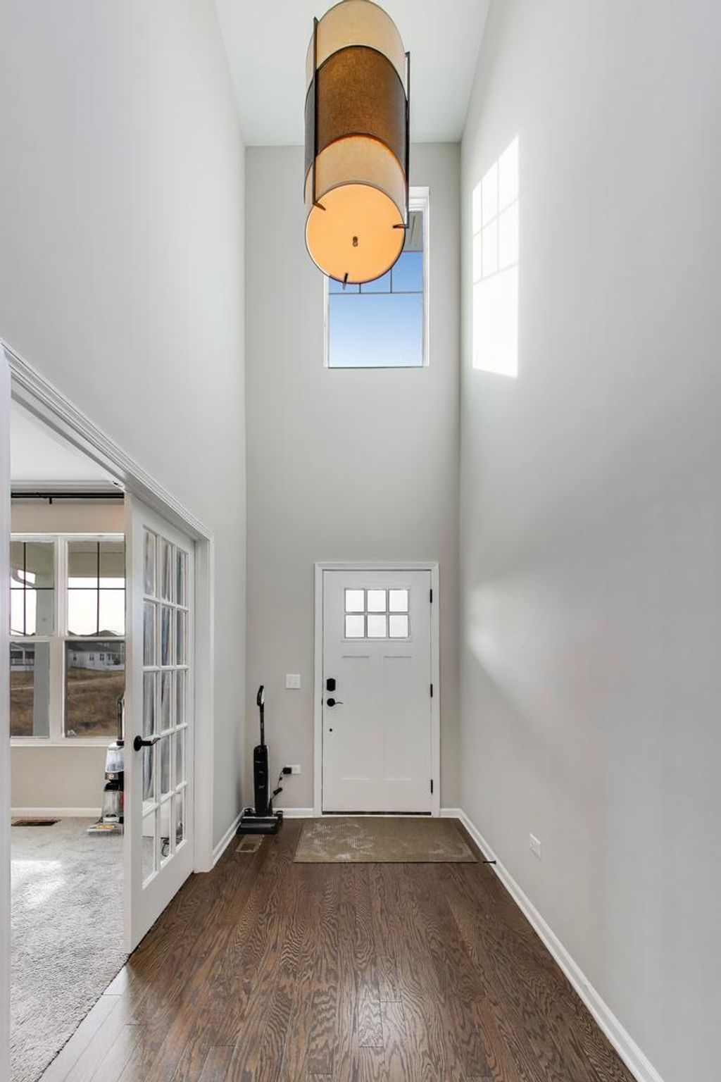 You are going to love this stunning, light-filled end-unit Alcott model townhome in Link Crossing, located in the highly coveted Adlai E. Stevenson High School district. This spacious home offers 4 bedrooms, 3.5 baths, a main-level primary suite, private office, oversized loft, and a full finished basement - providing exceptional flexibility for today's lifestyle. Hardwood flooring flows throughout kitchen and living room, including the basement, while dramatic two-story ceilings create a bright, open atmosphere. The open-concept main level is perfect for entertaining, centered around a massive quartz island and a gourmet kitchen featuring 42" soft-close cabinetry, quartz countertops, stainless steel appliances, stylish backsplash, and pantry. The main level also includes a separate office with French doors, ideal for working from home. The primary suite offers a spacious walk-in shower, double vanity, and an expansive walk-in closet with an organization system. A laundry room and mudroom conveniently connect to the attached two-car garage. Upstairs you'll find two generously sized bedrooms, a full hall bath, and a large loft overlooking the living and dining areas. The fully finished basement adds even more living space with high ceilings, neutral tones, and additional storage. Additional highlights include LED recessed lighting, gas fireplace, EV charger, beautifully landscaped backyard and transferable builder warranty. Link Crossing offers an exceptional lifestyle with nearby park space, pickleball, tennis and basketball courts, walking paths, and convenient access to expressways, Long Grove, and Lincolnshire. Move-in ready and better than new!