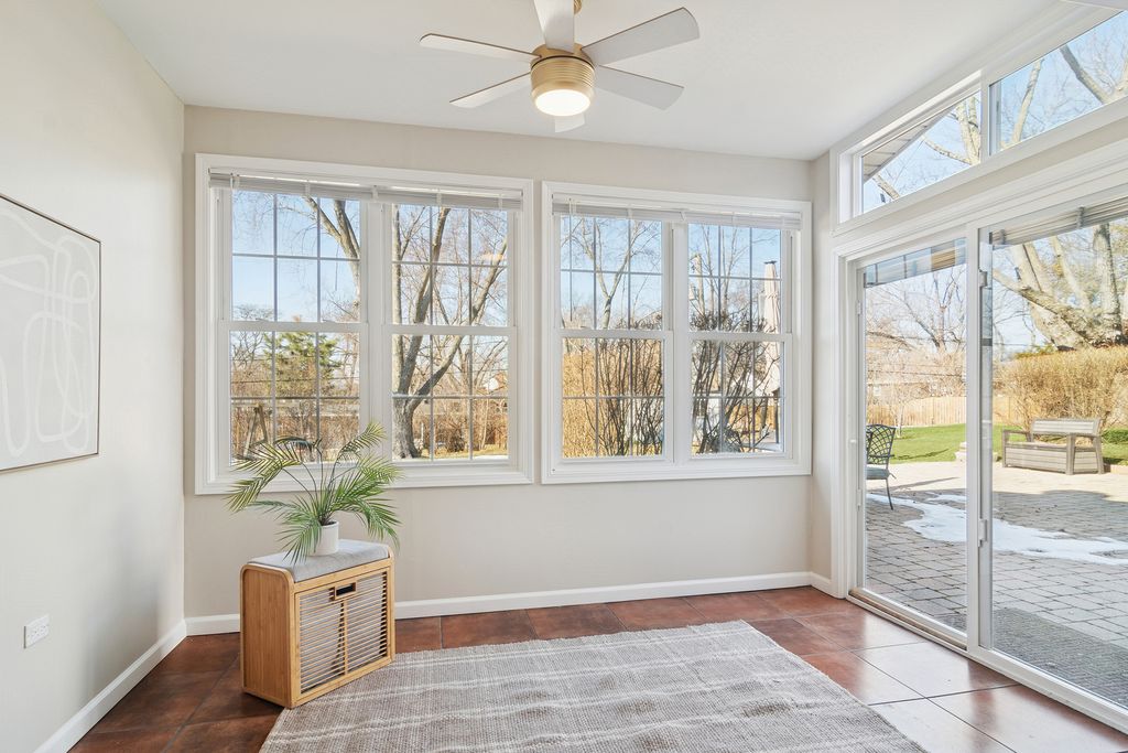 Welcome to 248 Beverly Road-a lovingly maintained 4-bedroom, 2.5-bath home nestled in the highly desirable Barrington Meadows subdivision. Ideally located just steps from Lines Elementary and Barrington Middle School - Station Campus, this home offers the perfect blend of timeless architecture, thoughtful updates, and everyday comfort. Freshly updated with neutral interior paint on walls and trim throughout all levels (January 2026), the home feels bright, cohesive, and truly move-in ready! Rich hardwood flooring flows seamlessly across both the first and second levels, creating warmth and continuity throughout the spacious layout. The main level offers generous living and entertaining spaces designed for both quiet evenings and effortless hosting. The eat-in kitchen features stainless steel appliances, including newer dishwasher (2019), double wall ovens (2016), and a French door refrigerator. A charming window seat and garden window over the double sink provide the perfect setting for natural light-and even year-round herb growing. The inviting, step down family room showcases 9-ft ceilings with a dramatic floor-to-ceiling stone fireplace and opens beautifully into the bright and cheerful sunroom. This light-filled space features heated tile floors (2018), new windows (2018), a new sliding glass door (2018), and a new ceiling fan (2025), creating a seamless connection to the outdoors. A built-in butler's pantry with cabinetry and bar refrigerator, along with a well-placed powder room, complete the main level. Upstairs, four generously sized bedrooms offer comfort and functionality, each filled with natural light, ceiling fans, and well-proportioned closets. The spacious primary suite features a private bath and a walk-in closet with an ELFA system designed for optimal organization. The finished basement, freshly painted with new carpet (2025), expands the home's versatility with a large recreation area-ideal for movie nights, a playroom, fitness space, or home office-alongside a dedicated laundry area with newer washer and dryer (2020). Enjoy morning sunshine from the charming covered front porch, and take in breathtaking sunsets from your backyard. The large brick paver patio (2018) creates the perfect setting for entertaining, with ample space for veggie gardens, play, or relaxing evenings outdoors. A spacious two-car garage offers convenient backyard access. Additional updates include zoned A/C systems (2018 & 2025), water heater (2025), basement windows (2018), and a brick paver patio and sidewalk (2018). The home's curb appeal is elevated with a recently re-stained (2025) Pella front door with pretty sidelights and a Clopay insulated carriage-style garage door. Set within one of Barrington's most established and welcoming neighborhoods, residents enjoy tree-lined streets, proximity to the Barrington Area Library, miles of trails and nature in Citizen's Park, local dining, boutique coffee shops, and the vibrant Farmer's Market. With easy access to the Barrington Metra, commuting to downtown Chicago-or staying connected to it-couldn't be more convenient. A true Barrington classic-move-in ready and waiting for its next chapter!