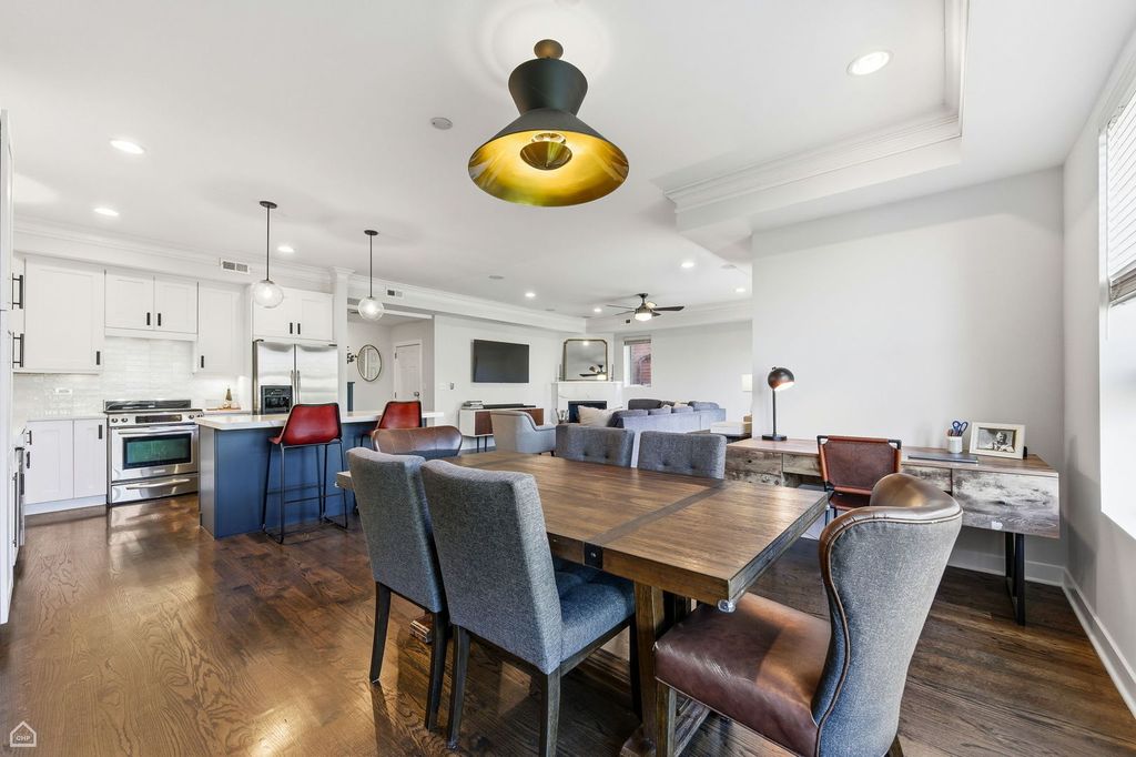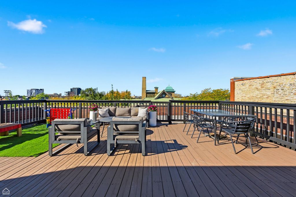 Beautiful condo on a rare double-wide lot across from Pulaski Park, offering expansive living and entertaining space in a quiet residential nook. The open-concept living, dining, and kitchen area provides an ideal layout for hosting, with abundant natural light and generous proportions rarely found in city condos. Enjoy three private outdoor spaces, including a large rooftop deck. Additional highlights include a heated attached garage and thoughtful indoor-outdoor flow. Unbeatable location just steps from Pulaski Park and close to the Salt Shed, Vaca's Creamery, Michelin-recognized restaurants, dog park, groceries, and nightlife. Easy access to the Blue Line at Division and Ashland and the Kennedy Expressway makes commuting simple. A perfect blend of space, convenience, and vibrant neighborhood living.