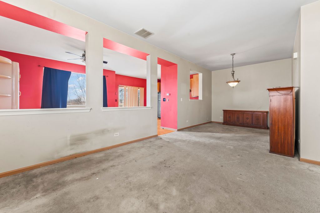 Opportunity to Build Sweat Equity in This End-Unit Townhome with Water Views. Bring your ideas and make this 2-bedroom end-unit townhome your own while enjoying beautiful pond views and a private setting. With a little vision and updating, this home offers a great opportunity to create value in a desirable community. A private side entrance welcomes you into the living room, which flows into the dining area-perfect for everyday living or expanding your space when entertaining. Through the interior cutouts, you'll see the family room at the back of the home, which opens to the kitchen with space for a table and chairs. Sliding doors lead to a patio overlooking the pond, an ideal spot to relax and enjoy peaceful evenings. Upstairs, the primary suite features a private ensuite bathroom with tub/shower combination and a spacious walk-in closet. A second bedroom, additional full bathroom, and convenient second-floor laundry complete the upper level. The attached two-car garage offers ample storage and convenience. The HOA includes exterior maintenance along with access to a pool and clubhouse, providing easy, low-maintenance living. Located in Fremont School District 79. Bring your personal touches and unlock the potential this home has to offer.