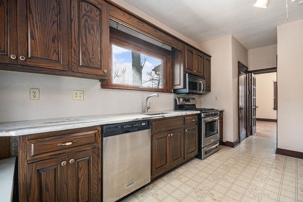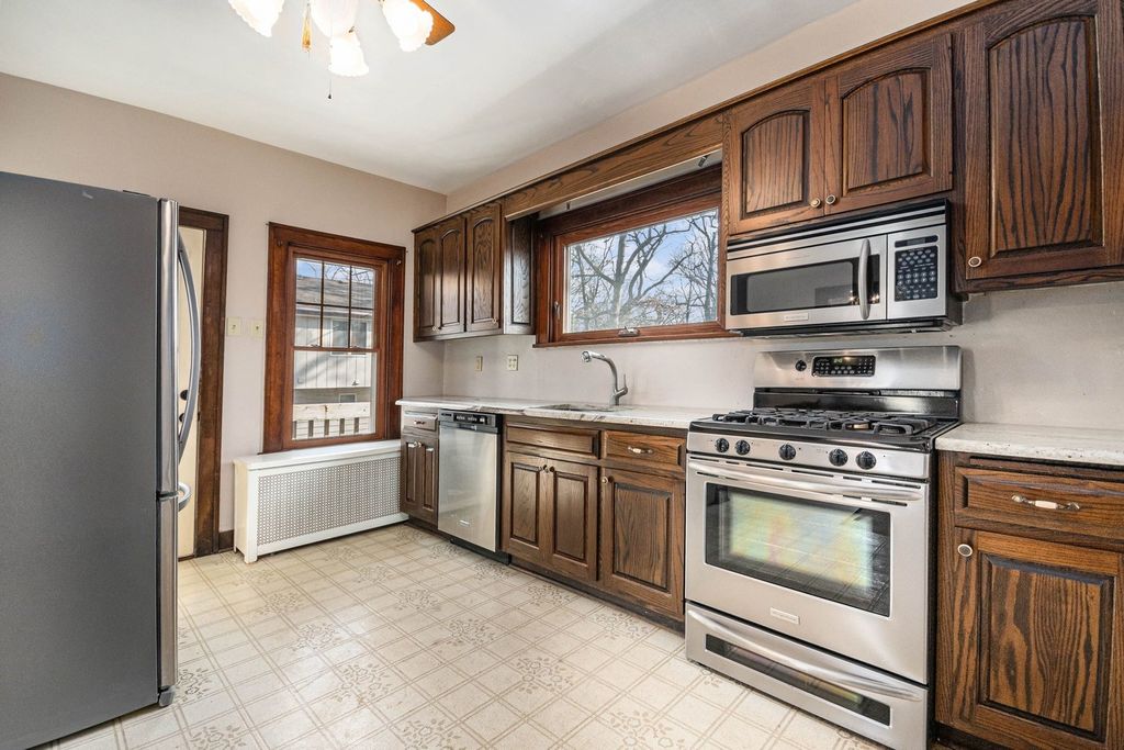 Welcome to your private oasis! This charming 3-bedroom, 1.5-bathroom home boasts exceptional curb appeal, featuring a long, inviting driveway and a lush perimeter of mature trees that provide a serene, wooded atmosphere. Inside, you'll find gorgeous hardwood flooring throughout and a kitchen equipped with sleek stainless steel appliances, while the unfinished basement offers a blank canvas for your storage or expansion needs. The property truly shines outdoors with a spacious 2.5-car garage and a lovely deck overlooking a generous yard, perfect for relaxing or entertaining. Ideally situated near top-rated schools, local parks, and premier shopping, this home perfectly blends secluded tranquility with everyday convenience-book your showing today!