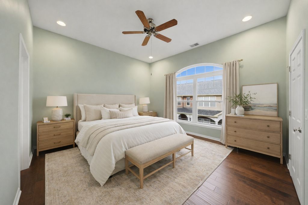 Welcome to this exceptional end-unit residence in the exclusive River Bend community, offering four levels of thoughtfully designed living space. This well-maintained home features 3 generously sized bedrooms, 2.5 baths, and a finished basement, providing both comfort and flexibility. Expansive, sun-drenched interiors and an open-concept layout create an elevated living experience, seamlessly connecting the kitchen, family room, and private outdoor deck-ideal for both everyday living and entertaining. The kitchen is well maintained and appointed with granite countertops and stainless steel appliances, blending function with timeless appeal. Throughout the home, you'll find hardwood floors, recessed lighting, and impressive 9-foot ceilings that enhance the sense of space and light. New carpet in the living room, stairs, and upper hallway adds a fresh, comfortable touch, while a new furnace and A/C provide added peace of mind. A 2-car garage with private entrance completes the home. Perfectly positioned near top-rated schools, universities, parks, shopping, and transportation. Enjoy immediate access to an active lifestyle with nearby walking and biking trails, along with opportunities for boating, fishing, golfing, skiing, and lakefront recreation.