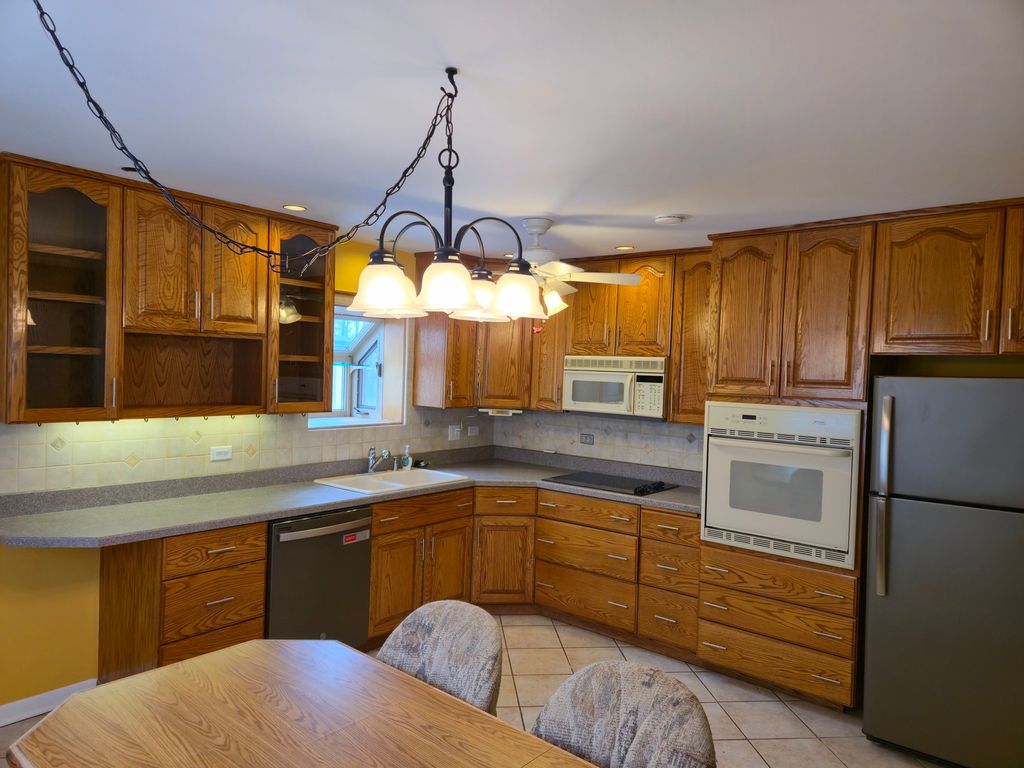 This Move-in ready Princess model split-level home is waiting for you! The curb appeal starts off with a warm bluish gray siding along with brick construction. The moment you walk in the front door, you will appreciate the open concept California Split-Level of yesteryear! The main floor consists of a large Living Room that boasts of a vaulted ceiling, two ceiling fans, and offers brand new carpet! The inviting Kitchen features 42-inch oak cabinets with 12 drawers, two lazy Susan corner cabinets, built in electric appliances, and a large pantry cabinet! There is plenty of natural light between the picture window in the Living Room, along with the Kitchen Garden Window and oversized side window! The upstairs also includes three freshly painted bedrooms, with all new carpet, and ceiling fans in each room. The full bath on this level features a new vanity and chest, along with a walk-in shower with grab bars for those in need of a bit more stability. The lower level is partially finished with another full bath, a laundry room, and plenty of space to create a Family Room. The walkout lower level enters into a cut out little covered area for garden storage and your waste bins. But the one thing that sets this model apart from all others in town is the 3-car detached heated garage with 8-foot doors! A dream come true for those of us with multiple vehicles and toys! The home features a water filtration system, a high efficiency newer furnace, a newer central air, along with a newer roof. All the big-ticket items are done for you! Come one, come all to YOUR new home!