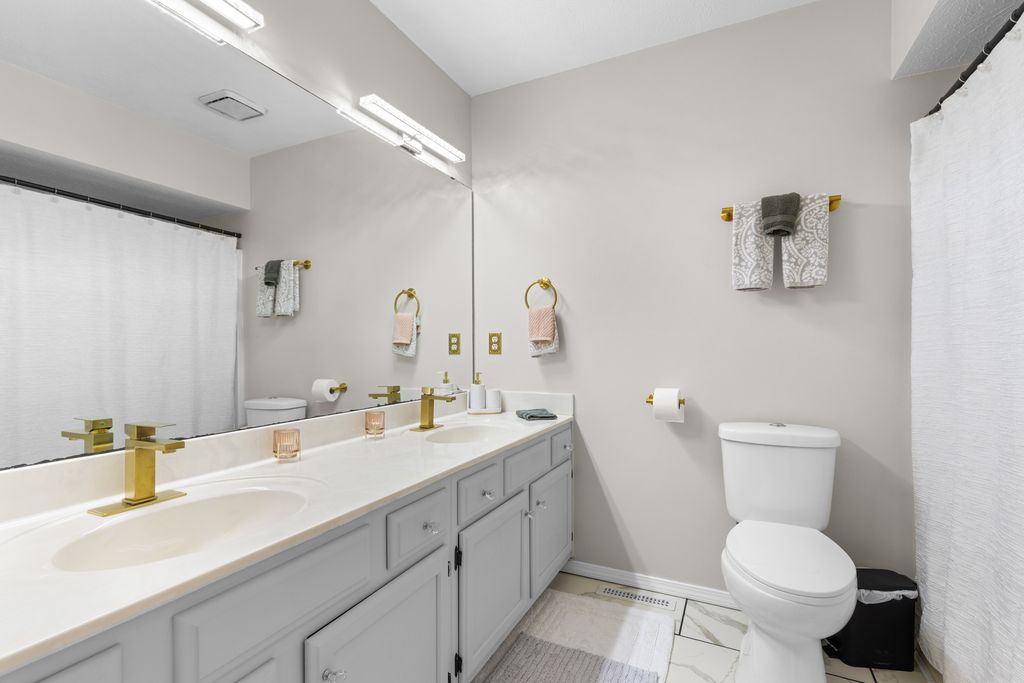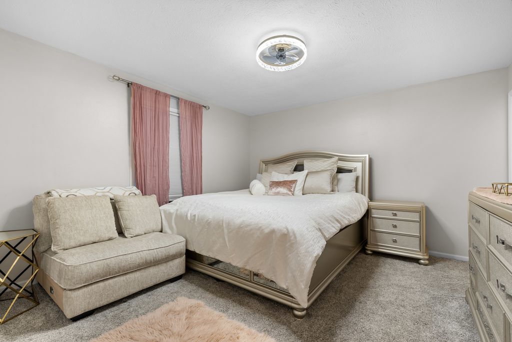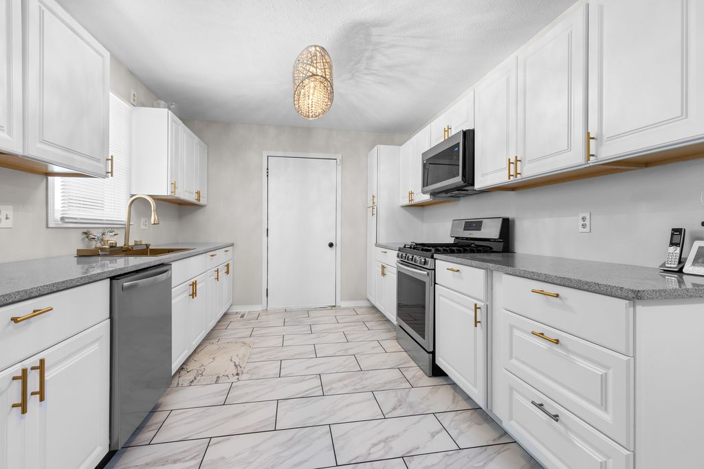 This beautifully updated home offers over 2800 sq ft of thoughtfully designed living space. Step into a spacious foyer with new tile flooring that opens to a stunning living room featuring vaulted ceilings and a cozy wood-burning fireplace. The fully remodeled kitchen is a standout, complete with granite countertops and a striking gold waterfall sink. The main level includes three generously sized bedrooms, two full bathrooms and convenient main-floor laundry. The lower level expands your living space even further, featuring a large recreation room, family room, fitness area, and a versatile bonus room, along with an additional full bathroom- perfect for guests or entertaining. The attached garage offers two front parking spaces plus a rear garage door with a third stall, and includes a electric vehicle outlet. Enjoy the wooded lot from your private concrete patio- ideal for relaxing or entertaining outdoors. Extensive updates throughout the home include a high-efficiency furnace with April Aire system and central air (new 2024) updated lighting and plumbing fixtures, new carpet in bedrooms, and new flooring in kitchen and entry way. Located in the gated Candlewick Lake community, residents enjoy access to a clubhouse with fitness center, pool, lake access, golf and community events