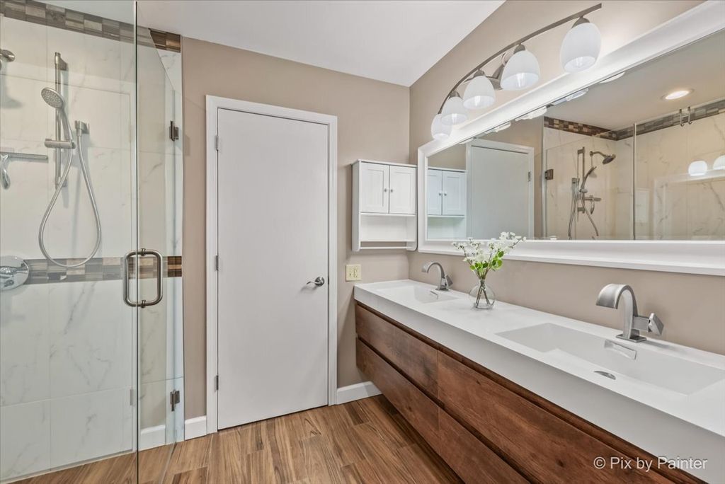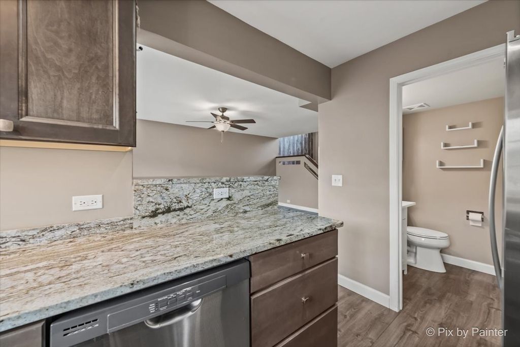 Well maintained and move-in ready, this beautifully updated townhouse showcases refined finishes and thoughtful upgrades throughout. The designer kitchen features stainless steel appliances, granite countertops, a breakfast bar, soft-close cabinetry, and a farmhouse-style sink, all complemented by abundant natural light and newer flooring across the main level. The open-concept living space seamlessly extends to a private, oversized deck overlooking serene green space and walking trail-an ideal setting for both relaxing and entertaining. The primary suite offers a sophisticated retreat with a custom accent wall, barn door detail, ceiling fan, and spacious walk-in closet. The spa-inspired shared bath is appointed with a double vanity and an expansive zero-entry shower. Convenient second-floor laundry with newer washer and dryer. Carpeting has been professionally cleaned, enhancing the home's pristine condition. Complete with a deep 1-car garage and ideally located near Randall Road with easy access to I-90, shopping, and dining. A perfect blend of comfort, style, and convenience. Schedule your showing today!
