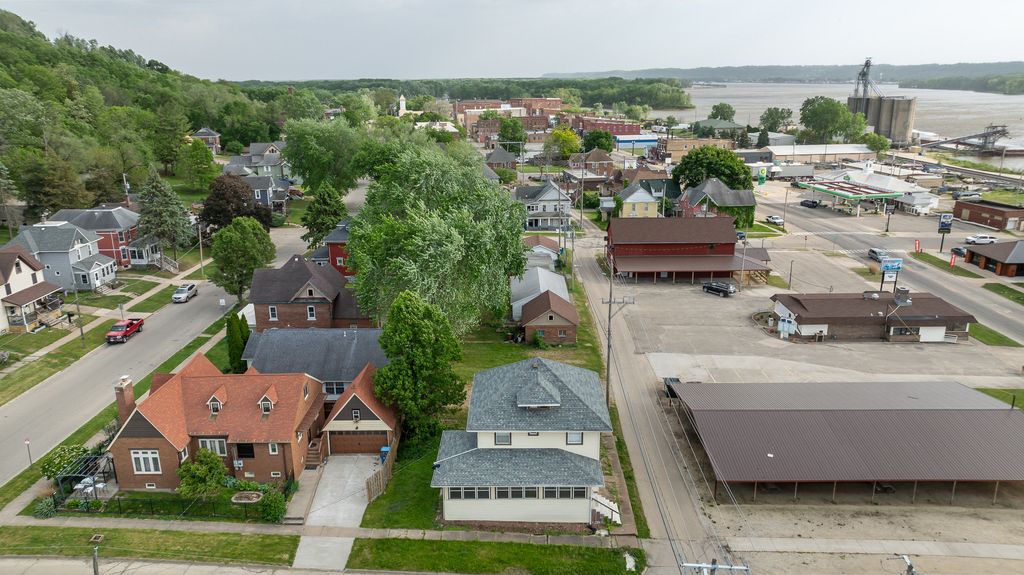 Welcome home. Charming Riverview Retreat in Quaint Town. Just a block away from the serene river in a picturesque town! This beautifully updated residence boasts original woodwork and a perfect blend of classic charm and modern convenience. Step inside to discover refinished original hardwood floors that flow seamlessly throughout the first and second floors, including the elegant staircase and detailed window trims. The spacious layout features two inviting bedrooms upstairs, both offering stunning views of the river, making it the perfect spot to unwind and enjoy the scenery. In 2022, this home underwent significant upgrades, ensuring peace of mind for years to come. Key improvements include a new roof, water heater, water cleaner and softener system, updated electrical box and wiring, as well as brand new appliances including a washer, dryer, stove, and refrigerator. The air conditioning unit is in excellent working condition, with internal parts recently updated for optimal performance. Outside, you'll find a spacious 2.5-car garage conveniently located across the street, providing ample storage and parking. Enjoy easy access to a boat dock just steps away, perfect for water enthusiasts and those who love to spend time on the river. This home is not only a wonderful place to live it can also be an excellent investment opportunity. Located just 35 minutes from Galena, IL, you'll have the perfect blend of small-town charm and access to nearby attractions. Don't miss your chance to own this delightful property that combines comfort, style, and an unbeatable location. Schedule your showing today!
