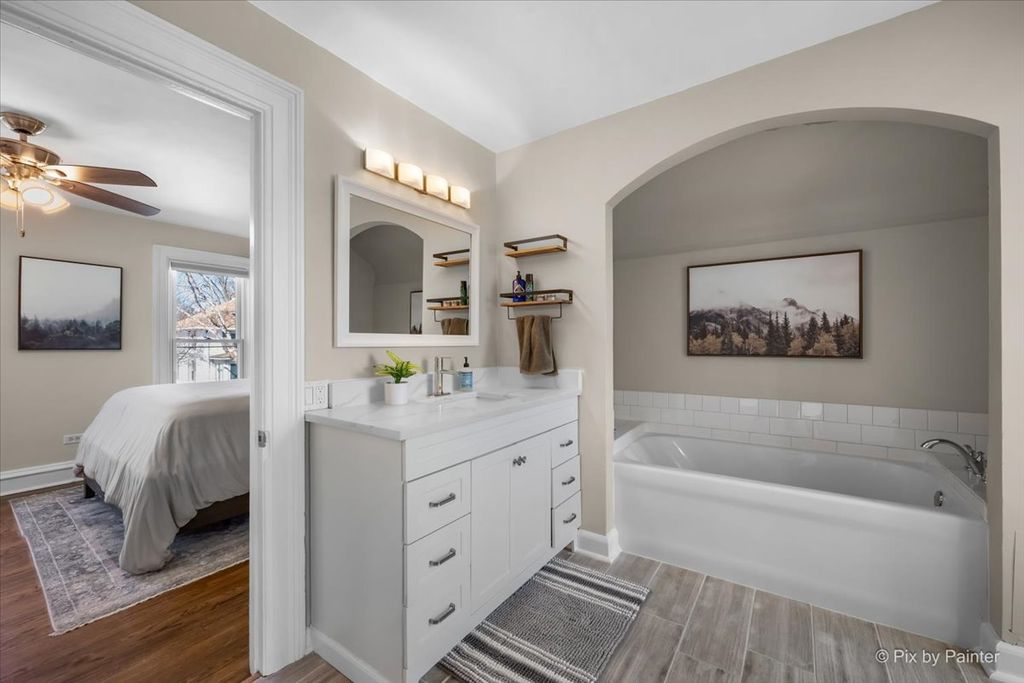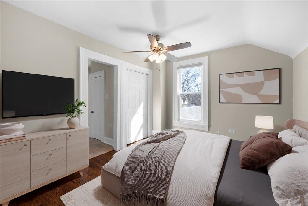An absolutely perfect starter home within walking distance to downtown Batavia! Step up onto the large front porch and see yourself swinging away your summer days and nights. There are beautiful original hardwood floors and an open dramatic staircase that greet you when you step through the charming antique door into the large front room. Next, a separate formal dining room with built-in shelves and a large bay window. The kitchen is gorgeous, completely updated with white maple cabinets, SS appliances, quartz countertops and porcelain tile flooring, plus all SS appliances, which stay. There is a first floor laundry room with upper storage cabinets and an updated 1/2 bath that completes the first floor. Upstairs are 2 generous bedrooms (primary is 26x12!) and a peaceful, updated bathroom with quartz vanity top, new fixtures and a romantic arch above the tub. The basement has been recently painted with hydro-static paint to ensure a clean place for storage. The backyard is very limited, so if you don't want to spend your summers mowing, this is a great home! Other updates include the roof in 2019, furnace and CA in 2019, new electric, hot water heater in 2019. Hurry, this home won't last!