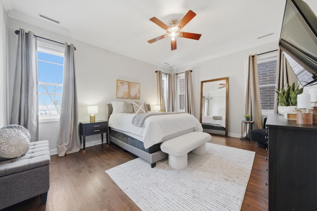 Welcome to this simply stunning, extrawide 2,000 sq. ft. penthouse in the heart of Lincoln Square/Ravenswood, offering an exceptional blend of elegance, comfort, and convenience. This topfloor, sundrenched 3bedroom, 2bath home sits on a 30-foot-wide lot, creating an airy, open feel throughout the living spaces. Step into a gracious foyer with tray ceilings and uplighting, leading into a grand westfacing living room featuring 10-foot ceilings, 8-inch crown molding, wainscoting, and room for three seating areas, plus a spacious dining area that comfortably seats eight. A fireplace adds warmth and charm to the room's ambiance. The chef's kitchen is designed for both beauty and functionality, showcasing 42-inch cherry cabinetry with upper glassfront displays, backlighting, and plentiful storage. Atrium doors lead to an impressive 30-foot wide private terrace, perfect for outdoor dining, lounging, or entertaining. Retreat to the expansive primary suite, now enhanced by a completely remodeled spa-quality primary bathroom featuring modern designer finishes, an elevated vanity experience, premium tilework, a refreshed walkin shower, and luxurious fixtures throughout. The suite also includes two jumbo custom-built walkin closets, offering exceptional storage and organization. Both additional bedrooms are generously sized and feature quality finishes. Enjoy the convenience of an actual laundry room, a rare city luxury. This home also includes attached garage parking plus an exterior tandem space, offering space for two-three vehicles, depending on configuration. Located just 3 blocks from the Brown Line and Metra, steps to Mariano's, and one block from Winnemac Park, this residence sits perfectly within reach of everything that makes Lincoln Square one of Chicago's most desirable neighborhoods - acclaimed dining, boutique shopping, green spaces, and lively community events. This penthouse is more than a home - it's a lifestyle. A truly remarkable opportunity to own a standout property in one of the city's most vibrant areas.