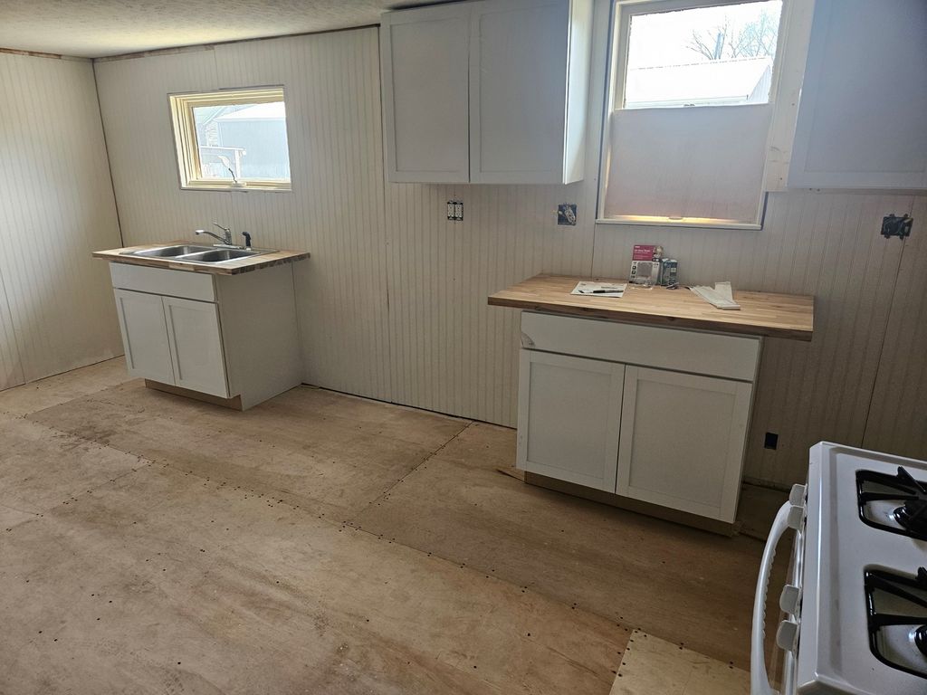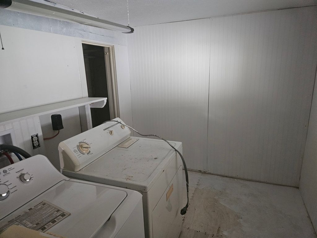 Partially remodeled 2 bedroom home, large livingroom-diningroom combination, spacious kitchen, detached garage with attached carport , covered patio, large pole barn/workshop with concrete floor and half bath, carport all on 2 lots.