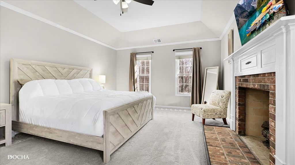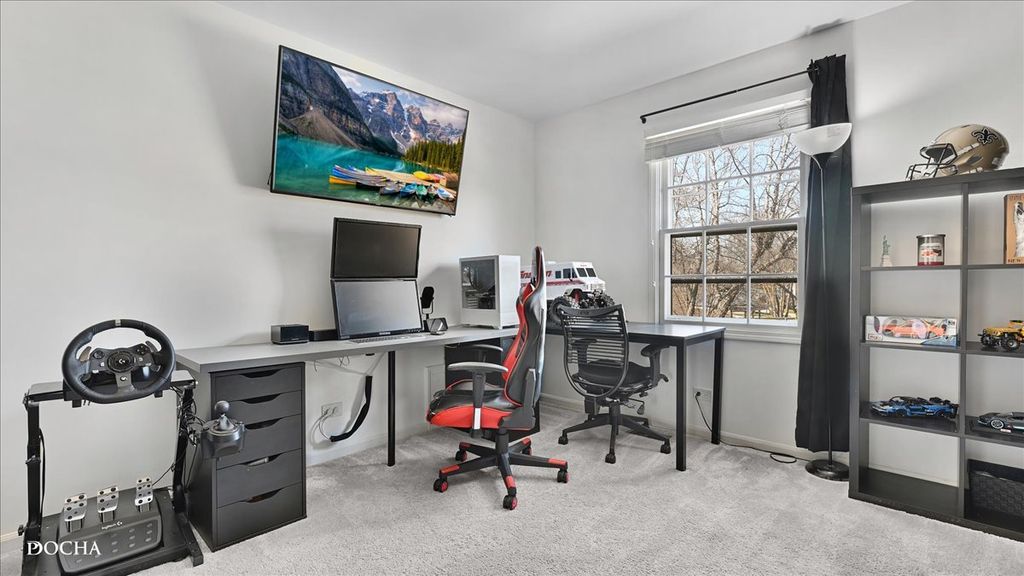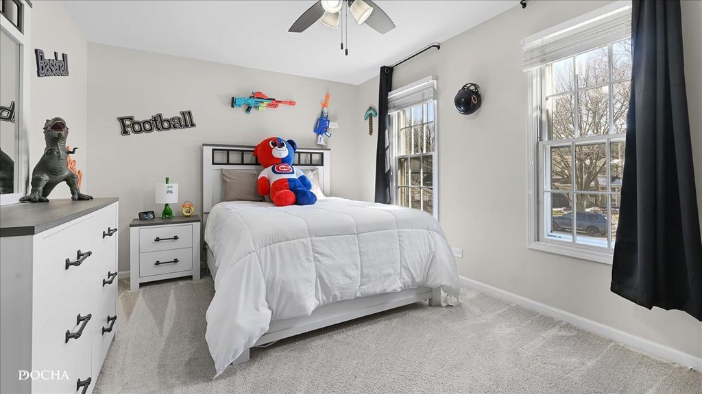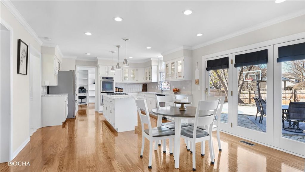 Stately Brick Beauty in Sought-After River Woods! Exceptional curb appeal welcomes you to this timeless red brick home featuring a 2.5-car side-load garage and beautifully maintained exterior. Step into the grand foyer with a curved staircase, updated lighting, and elegant finishes that set the tone throughout. This home showcases extensive molding, wainscoting, and detailed trim work, paired with rich hardwood flooring and crisp white doors and millwork. The spacious living room is filled with natural light from stunning Palladian windows and anchored by a cozy fireplace. A formal dining room offers the perfect setting for entertaining with custom millwork and crown molding. The updated kitchen is both stylish and functional, featuring white cabinetry, quartz countertops, stainless steel appliances, custom glass backsplash, and a walk-in pantry. The eat-in area opens through French doors to the backyard patio, creating seamless indoor-outdoor living. The vaulted family room is a true showstopper with a fireplace, built-in bar, custom shelving, and detailed architectural accents. A private first-floor office with built-in shelving, an updated laundry room, and a refreshed hall bath complete the main level. Upstairs, the luxurious primary suite offers a fireplace and a fully remodeled spa-like bath with designer tile, a freestanding soaking tub, and a walk-in shower. The second full bath has also been beautifully updated. Enjoy the fully fenced backyard with a paver patio, sprinkler system, and a private basketball court, perfect for both relaxing and entertaining. Major Updates Include: Garage organization system (2020), widened driveway (2020), new shutters (2024), exterior paint (2024), shed (2022), backyard sidewalk (2020), basketball hoop (2020), furnace (2024), water heater (2023), A/C (2025), attic insulation (2023), outdoor lighting (2022), refrigerator (2021), and gas line for stove (2026). Ideally located just steps from Dupage River Park with easy access to scenic bike trails leading to downtown Naperville. Convenient East Naperville location for commuters and situated within highly acclaimed Naperville District 203 schools (River Wood Elementary, Madison Jr High School, Naperville Central High School), including walkability to River Woods Elementary. This is the one you've been waiting for-don't miss it! VA Assumable loan at 5.56%!