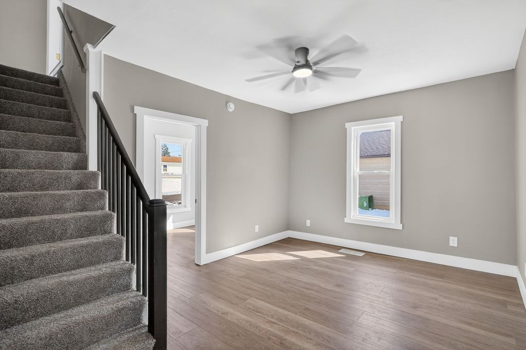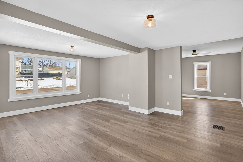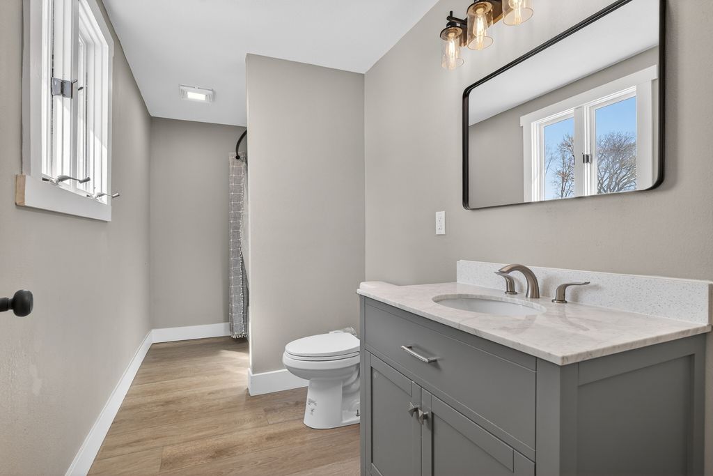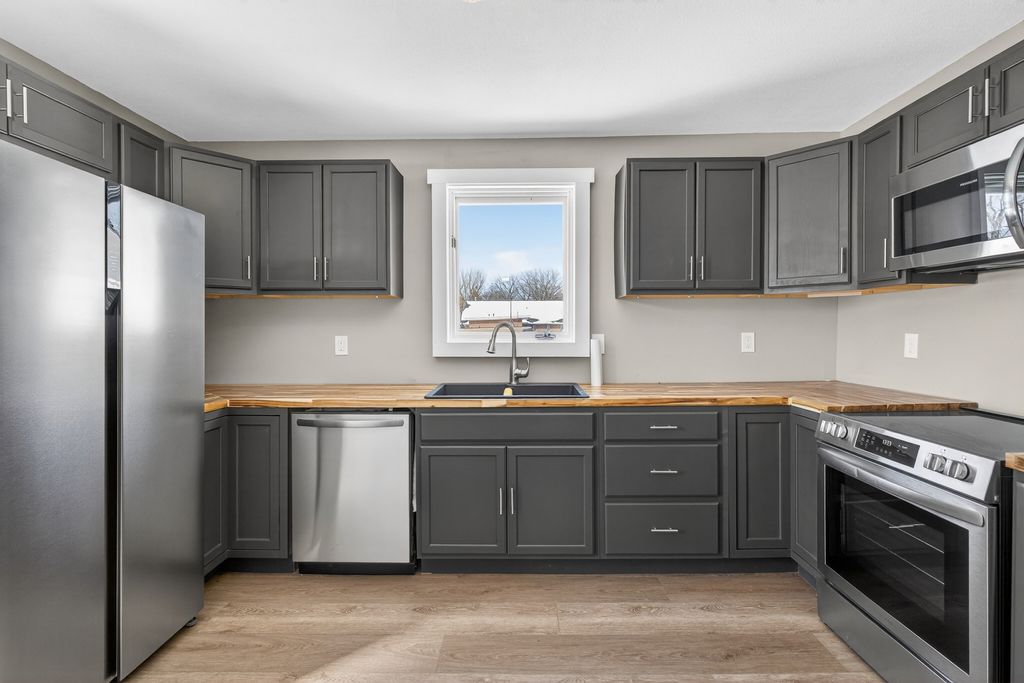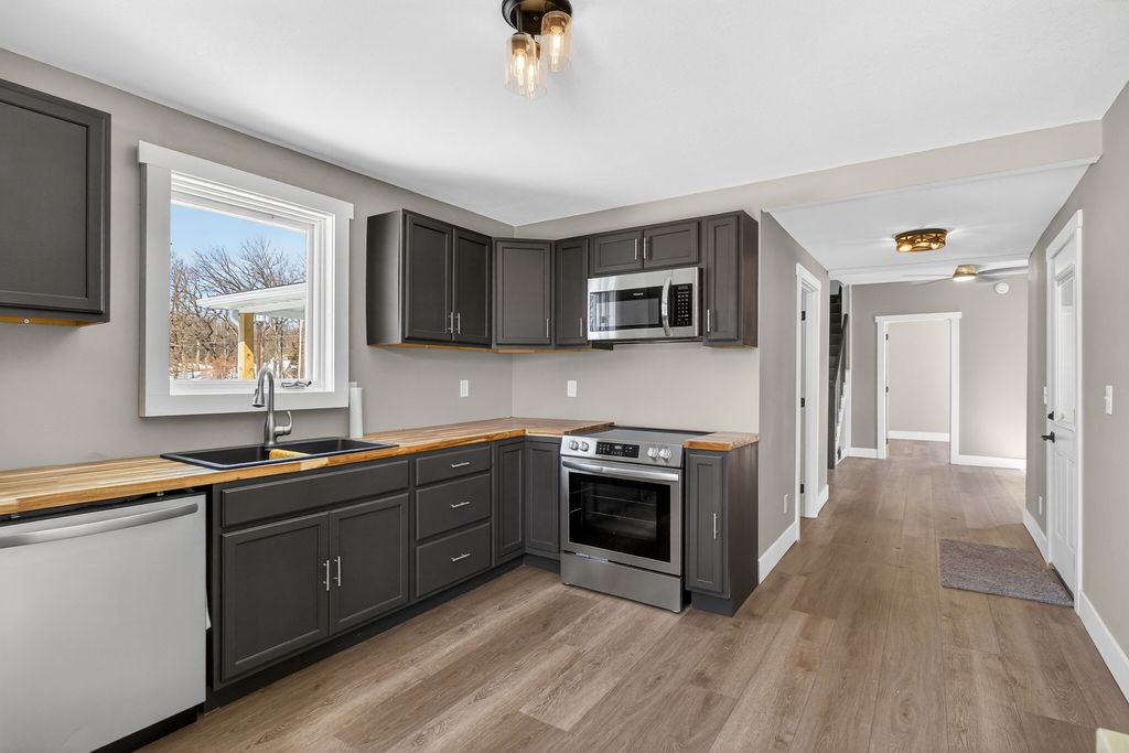 Beautifully remodeled 4 bedroom 2 bathroom home with main level laundry has been completely refinished from top to bottom and is move in ready. The owners left no room untouched as this home was completely taken to the studs with all new luxury flooring, mechanicals, electrical with 200 amp panel, fixtures, pex plumbing, hvac, roof, gutters, kitchen, concrete, spray foam insulation, and bathrooms. This home also has an attached deep one car garage that connects to the home with a functional and relaxing 3 seasons porch/breezeway. Enjoy the completely rebuilt front porch and corner lot. This is a fantastic opportunity to move into a home that is completely ready for its new owners.