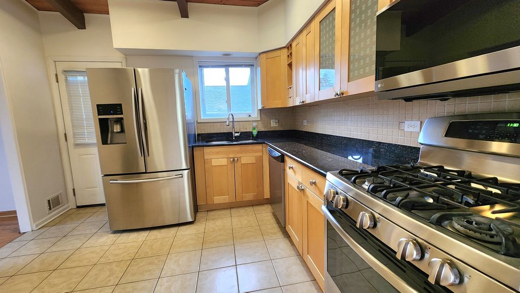 POPULAR TIMBER RIDGE SUBDIVISION; 3 LEVELS OF LIVING SPACE; THIS MODEL ENJOYS A DRAMATIC VAILTED WOOD BEAMED CEILING IN LIVING, DINING ROOMS AND KITCHEN; THERE ARE 4 SPACIOUS BEDROOMS - 4TH BEDROOM ON MAIN LEVEL WAS MOST RECENTLY USED AS AN OFFICE; THE KITCHEN (REDONE APPX 2018) BOASTS MAPLE CABINETS, STAINLESS APPLIANCES, CERAMIC FLOORS AND GRANITE COUNTERS; HARDWOOD FLOORS IN LIVING AND DINING ROOMS; FAMILY ROOM HAS PERGO FLOOR & FULL BATH; 5'4" IN HEIGHT CRAWL SPACE HAS BEEN FINISHED INTO A PLAYROOM; LARGE FENCED YARD CEMENT PATIO, NEWER WINDOWS, ROOF, SIDING AND CEMENT DRIVE; DRIVEWAY HAS CARPORT. SKOKIE TAXES WITH EVANSTON SCHOOLS.