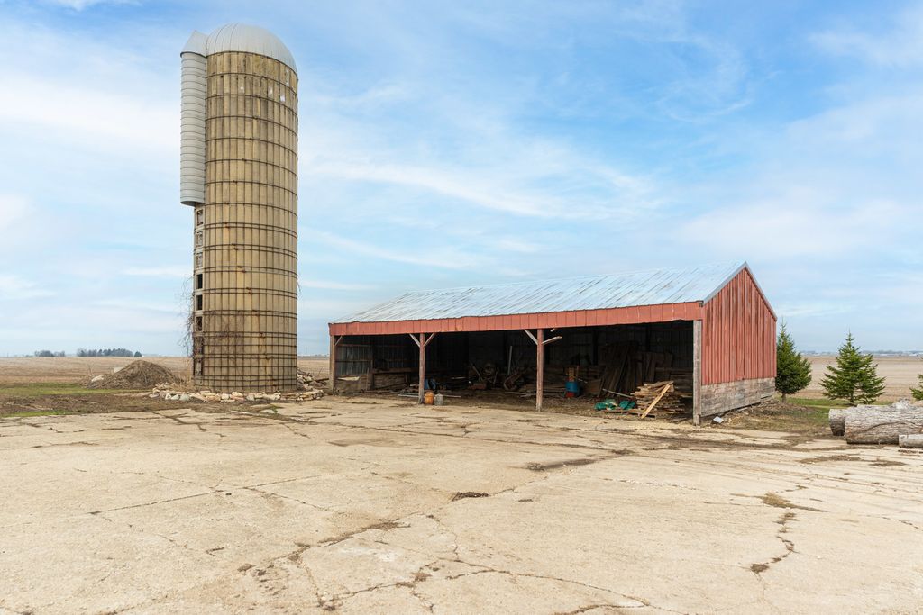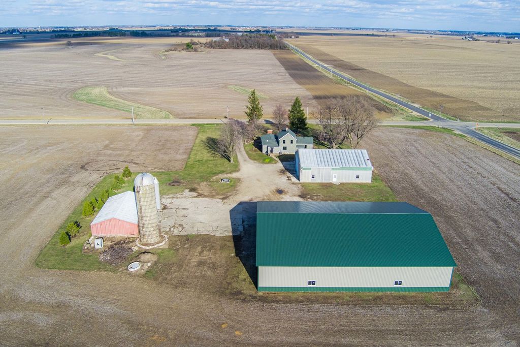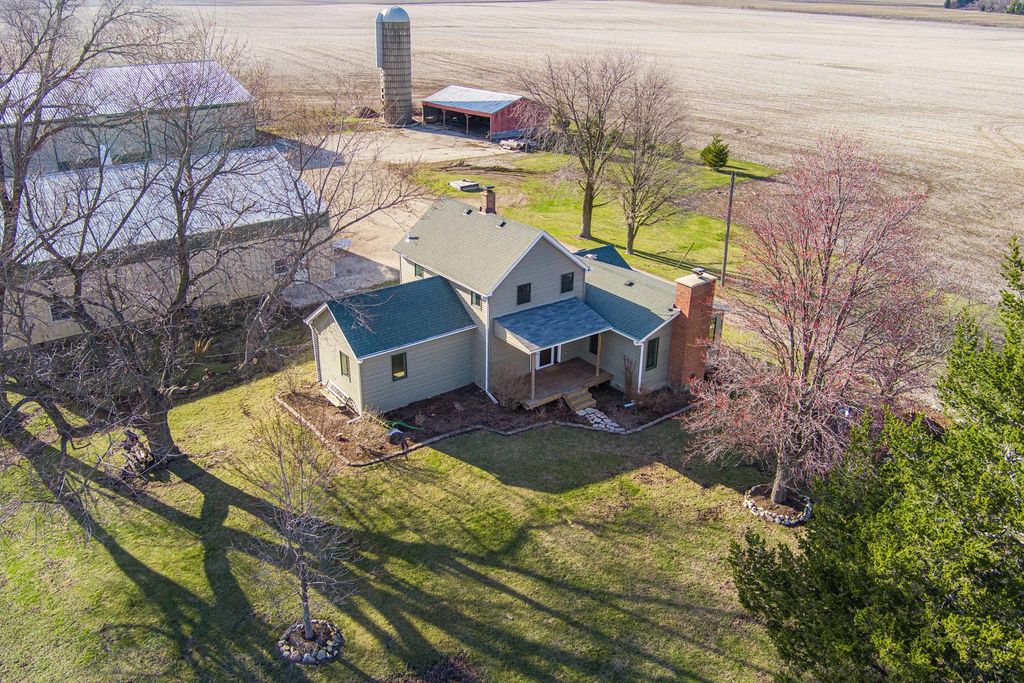 Exceptional opportunity to own 10 beautiful acres in the highly sought after Hinckley/Big Rock School District, featuring two impressive outbuildings and versatile land ideal for hobby farming, livestock, business use, or recreational enjoyment. The massive 100x80 Cleary outbuilding offers two oversized 15 foot high by 24 foot wide sliding doors, providing ideal access for RVs, semis, farm equipment, or large scale storage. The second 60x56 outbuilding is fully equipped with in-floor radiant heat (Glycol), finished and insulated barrel ceiling, new windows, electric throughout, and a full bathroom-making it perfect for a workshop, car collector, mechanic, home-based business, studio, or hobby enthusiast. A classic silo, and metal freestanding open-sided livestock shelter enhance the property's authentic farmhouse appeal. A portion of the acreage is tillable/farmable, offering income potential or personal agricultural use. The farmhouse is completely remodeled and blends timeless character with modern finishes. This 3 bedroom, 2 full bath home offers quartz countertops, wainscoting, stainless steel appliances, abundant soft-close cabinetry with pantry, and shiplap accent wall that complements the modern farmhouse aesthetic. The expansive living room is anchored by a dramatic floor to ceiling brick fireplace with large custom black mantle, creating a warm and inviting focal point for gatherings. Buyers will appreciate the flexibility of primary suite options, including a stunning second floor primary retreat featuring raised ceilings with exposed beams, private full bath, and spacious walk-in closet, or the option for a convenient main level primary showcasing original shiplap detail. Generous living spaces, an eat-in kitchen area, and thoughtful updates throughout (new Marvin windows, LVP floors, roof and siding) create comfortable everyday living. Enjoy peaceful country views from the charming front porch or unwind in the back porch while taking in breathtaking sunsets over your private acreage. With space to grow, work, and create, this property offers endless possibilities in a prime location with close access to I-88. This one will not disappoint!