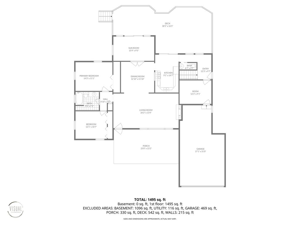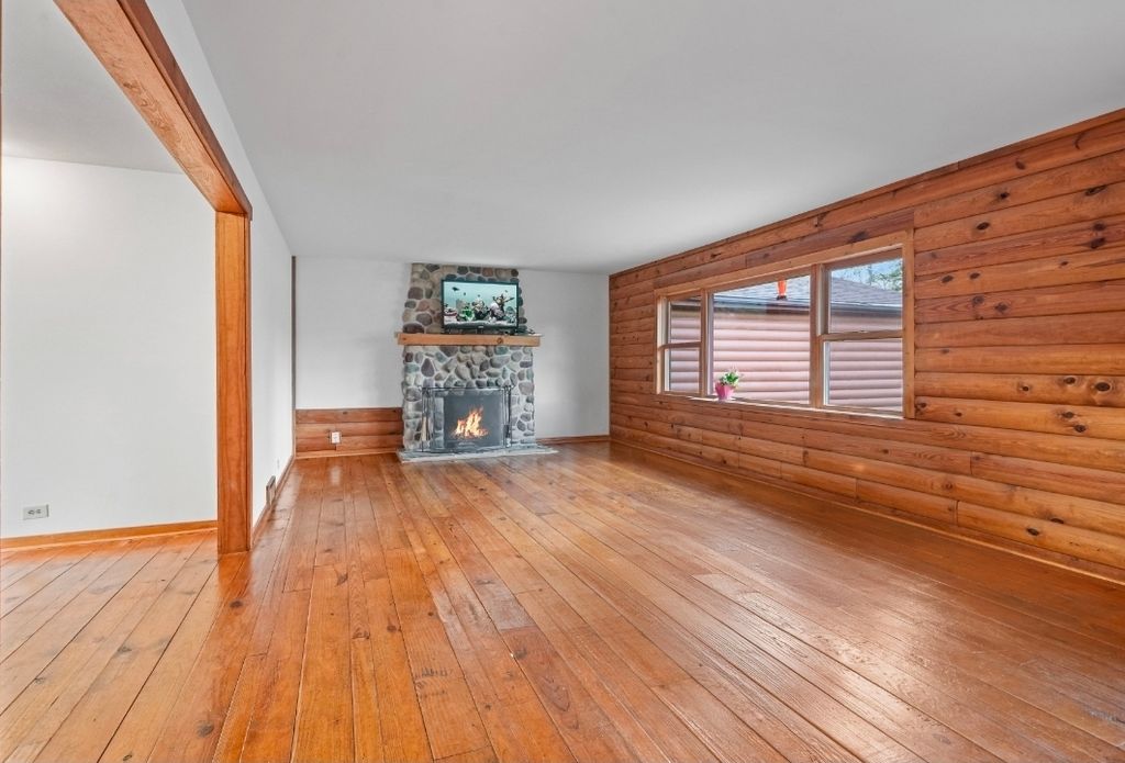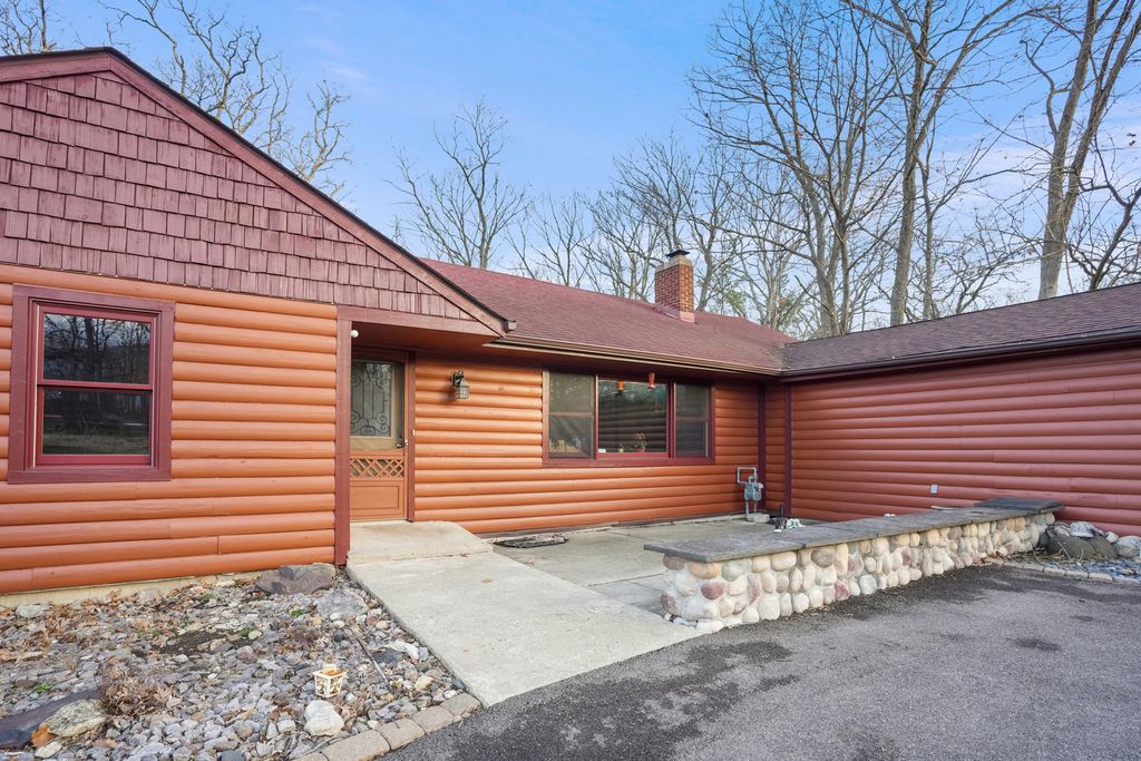 SECLUDED, SOUTH ELGIN RANCH // If you are looking for tranquility, this two-bedroom, two bath log home is what you have been waiting for. It is one-of-a-kind. From the moment you walk in, you will fall in love with the warmth of the beautiful wood finishes and stonework on the wood burning fireplace. You will be flooded with natural sunlight. As you walk in through the dining room into the sunroom you can't help but to be captivated by the peace and serenity. The views, nature, and wildlife reset your day. If you're lucky, you'll be there to take in a sunset. Sitting back and staring into the expansive, wooded lot has a way of erasing all the cares in the world. Get in to see it before it's gone! Some Updates: 2015 New Garage, Garage Door, Composite Deck, Added Central Air Conditioning. 2024 New Asphalt on driveway. Has not yet been seal coated. 2026 Fresh Paint and hardwood floor seal.
