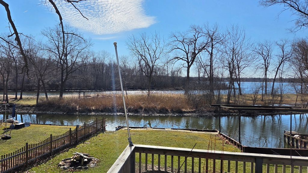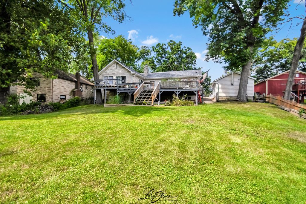 Kick back and relax at this Chain O'Lakes waterfront home - your perfect "getaway" spot in the heart of the Chain between Fox and Petite Lakes! This 2 bedroom, 2-1/2 bath hillside ranch offers Fox Lake views and a gently sloped lot that has this home safely outside the 100-year floodplain. Plus a steel seawall with boat slip along the water front. The main floor is built for lake life, featuring three sets of sliding glass doors that open to a very large 3-level deck - the ultimate place to grill out and watch the wildlife and boats go by on the main channel while you're located on a more peaceful secondary channel only about 300 feet away from the action... it's the best of both worlds. Downstairs, the basement with outside access is ready for fun with a recreation room, half bath, and a workshop for waiting for your projects. There's even a rough-framed office plus two storage areas - one specifically designed to stash your boat gear and outdoor furniture with ease. You'll have peace of mind with a newer roof (installed 2018) and a new water softener (2025) already taken care of for the next homeowner. This home is complete with a garage for your classic car, toys or yard equipment. The stucco exterior offers low-maintenance so you can enjoy the lake retreat you've been looking for! Pack the cooler, grab your fishing poles and water skis and jump in the boat... it's time to start living the Chain of Lakes lakefront lifestyle!