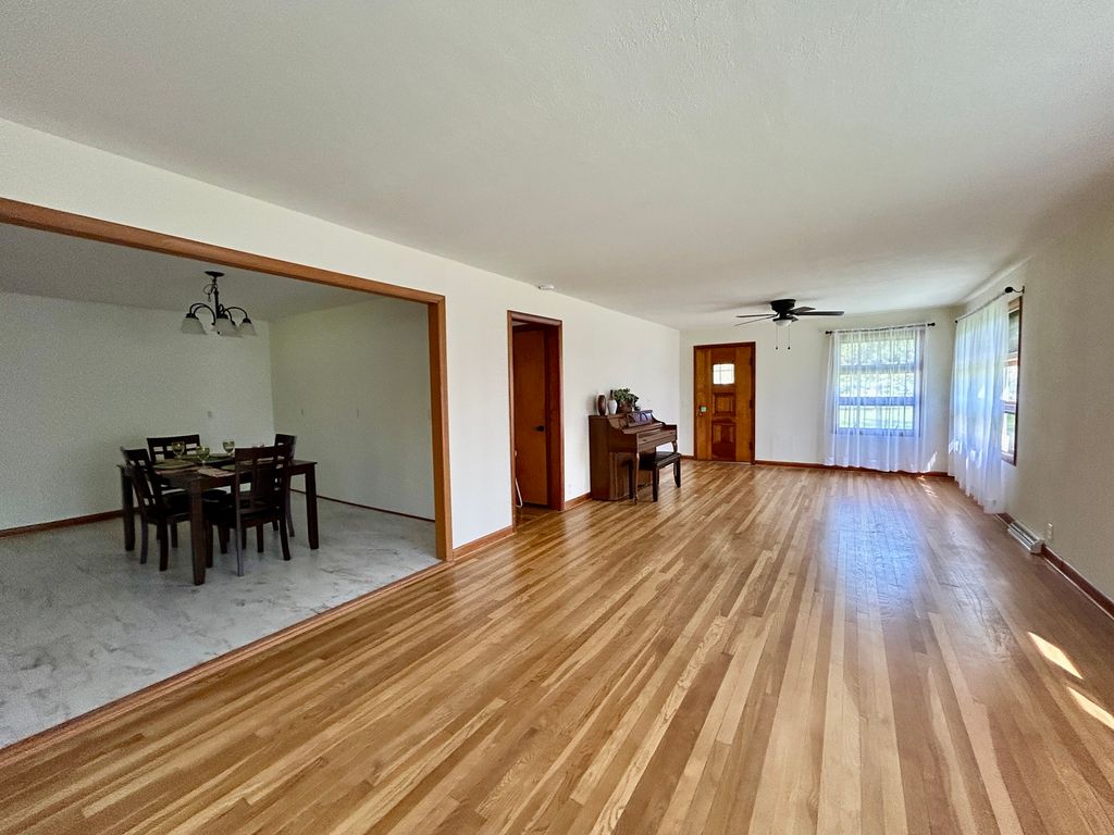 NEW LISTING! This three-bedroom home sits on 2 acres just down the road from Unity Point School. There are glowing hardwood floors in the spacious Living Room and all three bedrooms. The kitchen and formal dining rooms both have new luxury vinyl flooring. Most of the light fixtures are new and the switches and outlets have been upgraded. There is also a new elec. panel box. All appliances stay including a new stainless-steel refrigerator. There is a main floor family room with storage closets making it an option for a fourth bedroom. This home has an unfinished basement with additional bathroom facilities. The sunroom has its own mini split so it can be heated and cooled. There is a 22 x 30 three-car garage attached with a covered breezeway. It has double doors in front and a single door in the rear.