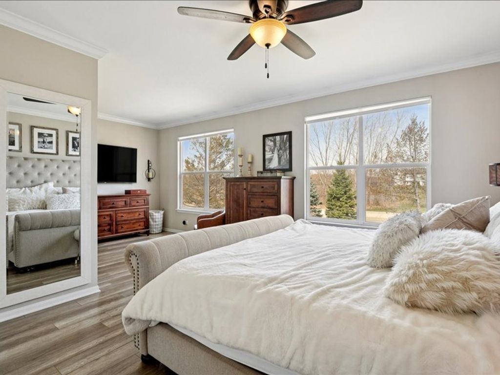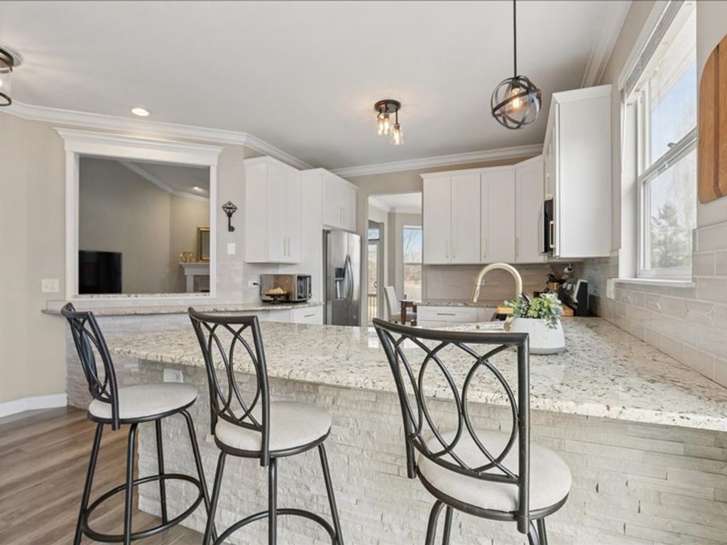 Just Move In! Stunning Ranch in Highly Sought-After Riverwalk. Rarely available and beautifully updated, this exceptional ranch home offers the perfect blend of style, comfort, and functionality in one of the area's most desirable communities. From the moment you step inside, you're welcomed by an open-concept layout, soaring vaulted ceilings, and an inviting gas fireplace that anchors the spacious living area-ideal for both everyday living and entertaining. The home has been thoughtfully updated throughout, featuring modern flooring, updated cabinetry, renovated bathrooms, stainless steel appliances, updated mechanicals, and designer lighting-creating a truly turnkey, move-in ready experience.The kitchen is a standout, complete with granite countertops, a breakfast bar, and elegant stone accents, offering both functionality and a warm gathering space for hosting. The primary suite provides a private retreat with a spa-inspired bathroom and dual vanities, combining comfort with a touch of luxury. The expansive English basement significantly extends the living space and is designed for entertaining, featuring a custom bar, brick-style accent walls, a large recreation area, and an additional bedroom-perfect for guests, & flexible living needs. Ample storage space adds even more practicality. Step outside and enjoy the lifestyle this location offers-just moments from the scenic trails and water access at Fox River Forest Preserve, Fox Trail Park, the Fox River Marina and Boat Launch, restaurants & shops. This home truly has it all-thoughtful upgrades, functional living space, and an unbeatable location. A perfect "10" and an absolute must-see!