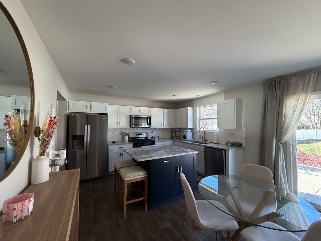 This Single-Family Home features 3 bedrooms situated on a large lot with mature trees lining the back yard. The Haven's first floor is designed with a cozy, open-concept kitchen and a great room layout. Walk into beautiful luxury vinyl flooring, Stainless Steel Appliances, and spacious white cabinetry plus an island! Upstairs you'll find the convenience of an upper laundry room! No more carrying loads of laundry up and down the stairs! The second floor lays out nicely with the secondary rooms away from the Primary Bedroom. The Primary Bedroom features a walk-in closet and a private bath with a dual raised bowl vanity, walk-in shower, and plenty of storage space! The basement is finished with a rec room and bar area for your entertaining needs. The backyard is fenced with a great patio and fireplace for your outdoor get togethers. Located only 20 minutes from New Lenox's popular restaurants and shopping and only 10 minutes to I-80, The Metra Train Station, and the Iconic Downtown Joliet. This home includes America's Smart Home Technology which allows you to monitor and control your home from the comfort of your sofa or from 500 miles away and connects to your home with your smartphone, tablet or computer. Home life can be hands-free. It's never been easier to settle into new routine. Set the scene with your voice, from your phone, through the Qolsys panel which you can schedule it and forget it. Your home will always await you with your personalized settings.