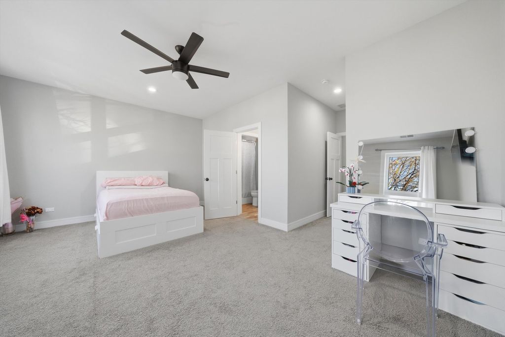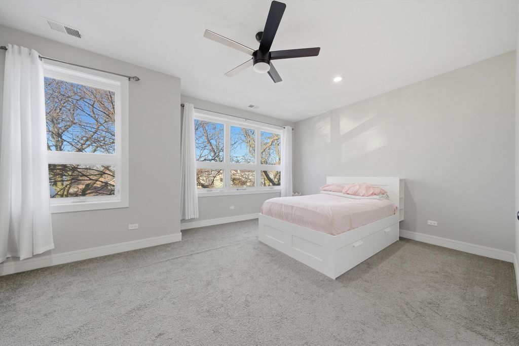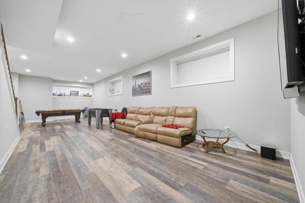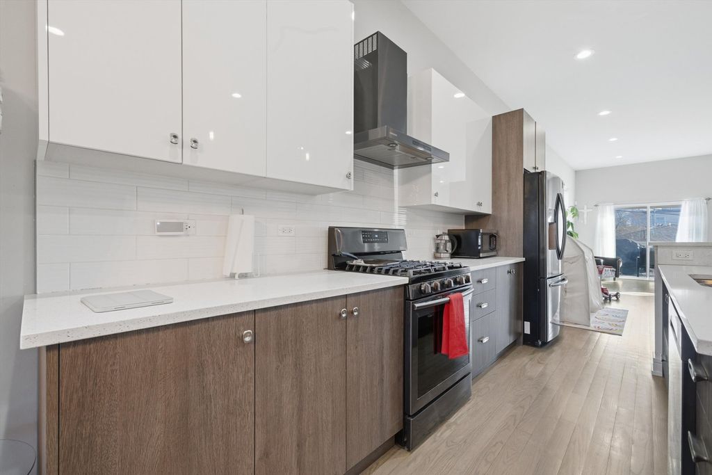 Beautiful Modern 3-Story Single Family home with lots of natural light and open floor plan. Classic grey hardwood flooring throughout main floor, living room leading to an inviting dining room, Custom gourmet kitchen with a combo of white and rustic dark MARFA soft-close cabinetry, Quartz counter tops, Samsung black S.S. appliances with Bluetooth range top, overlooking seating area and deck, 2nd floor has 3 spacious carpeted bed rooms, full bath, laundry room, a Master Suite with a private bath and LED lighting/Bluetooth. 10 ft. Open finished basement offering a great amount of space for entertaining. Guest room or office space, full bath and 2nd laundry rm. Walking distance to METRA, CTA, near rapidly developing Armitage St. corridor with many shops and restaurants. Plus, 10 minutes from 606 Trail. EASY to SHOW!