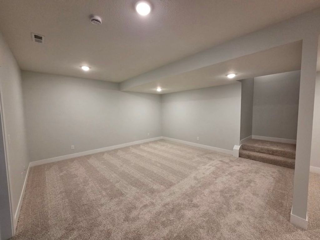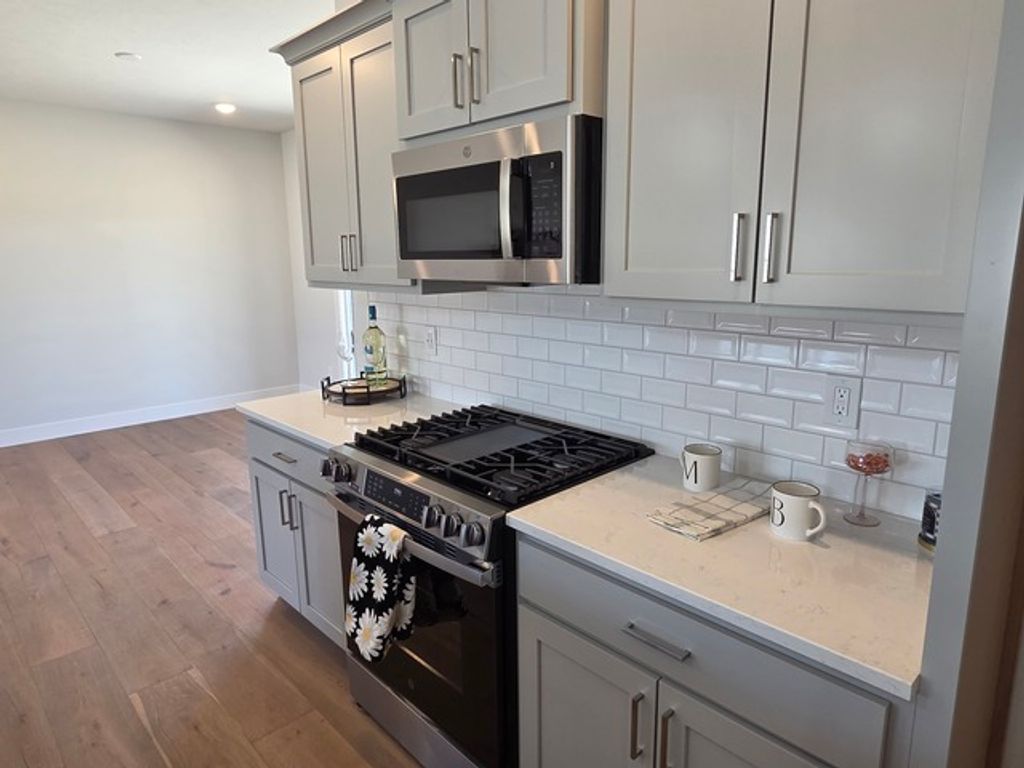 Stunning NEW CONSTRUCTION RANCH in Beecher Trails by Mark Bowers Homes. This rare JUMBO floor plan is one of the larger ranch homes you can fit on most city lots. This spacious home offers a large family room with a beautiful fireplace, a convenient dining area that opens to a jumbo covered back patio, and a kitchen designed for today's lifestyle with abundant counter space, custom soft-close cabinetry, and an oversized gathering island perfect for entertaining. The main level features large bedrooms, including an impressive primary suite with a tiled shower, hardwood flooring throughout, a main-floor laundry room with custom built-in drop zone, and an extra-deep 3-car fully insulated garage. The finished lower level provides exceptional additional living space, creating a true "monster" basement for recreation, entertaining, or extra family living. Built with quality and efficiency in mind, this home includes 2x6 exterior walls, R-19 insulation, LED puck lighting throughout, upgraded trim and 5-panel craftsman-style doors, USB outlets, myQ smart garage technology, EV charging capability (220V), hot/cold water spigot in the garage plus gas line for future garage heater, gas line run to covered patio for your grill or heater, and TV/cable hookups in both the garage and covered patio, not to mention across from each bed site in sleeping rooms. Additional thoughtful features include holiday light outlets in the soffits (with timer switch for auto control), automated fireplace blower that kicks on at certain temp automatically expelling heat into family room, and excellent evening curb appeal from all the down-lighting in the soffits. Enjoy beautiful evenings under the covered patio shaded from the west sun and the privacy of having no backyard neighbors and backs to farm ground.... This is another exceptional build offering modern comfort, energy efficiency, and outstanding attention to detail-all backed by a 1-year builder warranty. Broker interest.