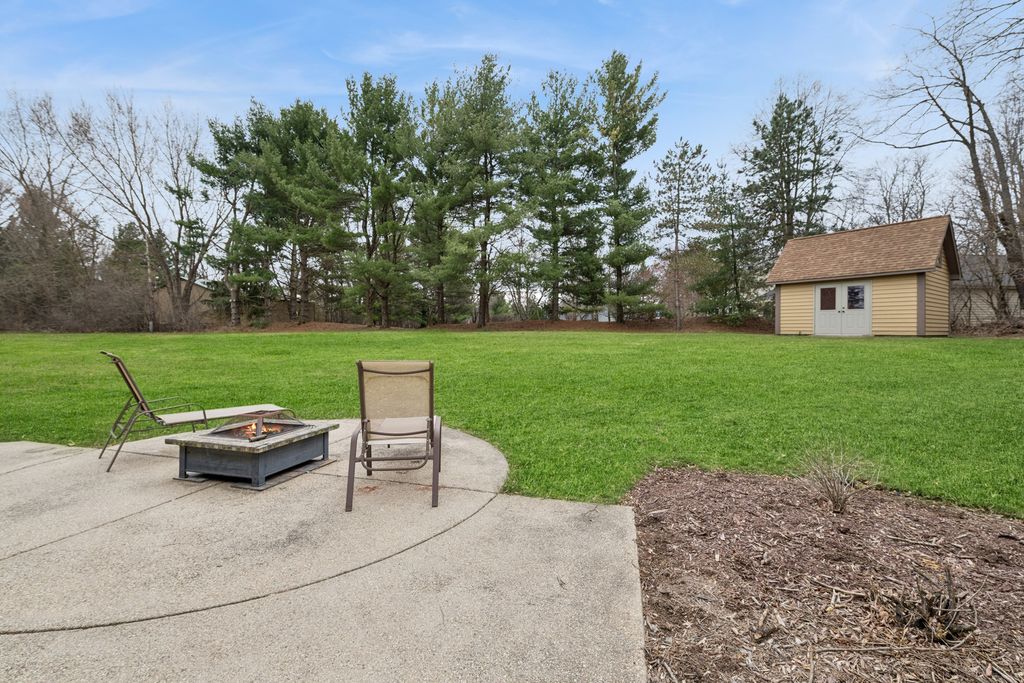 Nestled on over an acre in the tranquil Glenrich subdivision, this beautifully maintained home offers fantastic space and exceptional versatility. The updated kitchen (2018) is the heart of the home, featuring granite countertops, soft-close cabinetry, and a generous center island with breakfast bar-seamlessly opening to a warm and inviting family room with cozy gas fireplace. In addition to the bedrooms upstairs you will find a large open loft to enjoy for many uses. A charming 3-season room provides the perfect spot to unwind while overlooking the expansive backyard where you'll find a large patio adding the perfect touch for outdoor entertaining. The finished lower level adds valuable living space, complete with a recreation room including another gas fireplace, full bath, flex room (4th bedroom) and large storage/mechanical room. Car enthusiasts, hobbyists, or anyone needing extra space for toys will appreciate the two-car garage PLUS THE ADDITIONAL heated 2-car detached garage featuring a dog wash station and walk-up attic storage. A matching storage shed, central vacuum system, invisible dog fence and security system further enhance the property's functionality. Thoughtful updates provide peace of mind, including a new furnace (2026), A/C (2023), new driveway (2025), freshly stained cedar siding (2025), and numerous windows replaced or repaired (2025). Enjoy quaint downtown Richmond featuring boutique shops and a variety of dining options just minutes away.