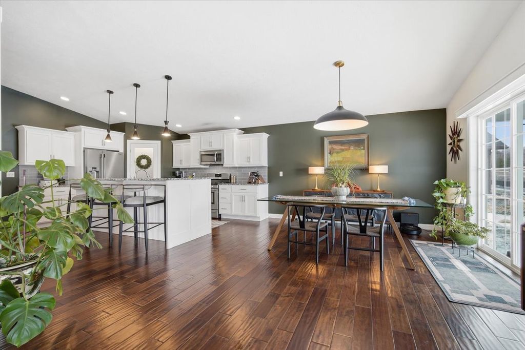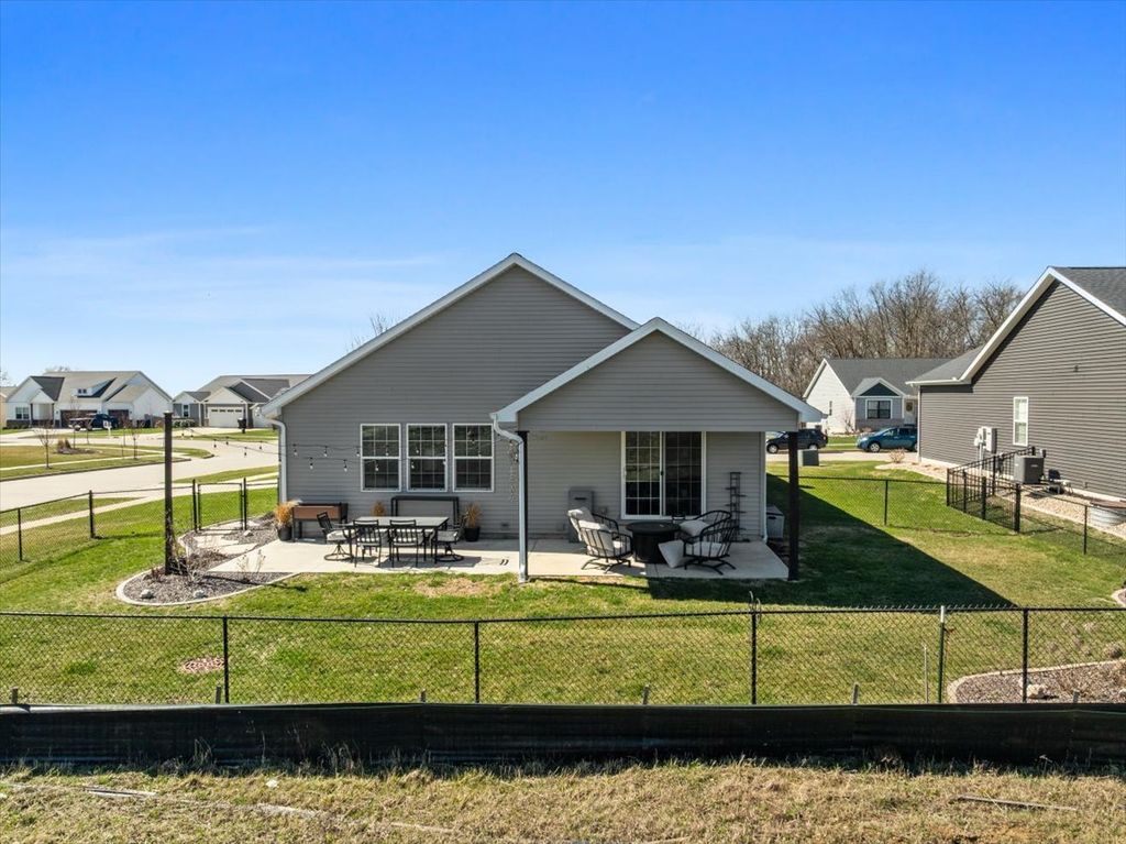 Corner lot ranch with 2 car side-load garage and fenced yard!!! This home has been kept in pristine condition so if you are looking for new construction without paying new construction prices - this would be a GREAT option!!! This ranch has generous room sizes, a finished basement and an open concept floor plan! Main floor boats a master bedroom, laundry area, AND another full bath and bedroom ALL on the first floor! Hardwood flooring in entry, kitchen, eat-in area and living room! The kitchen is exceptional with quality cabinetry, granite countertops, backsplash, stainless appliances, island area and pantry! Eat-in area for dining and living room that boasts vaulted ceilings, gas fireplace, easy access to your patio and fenced backyard and TONS of natural light that shines throughout! The master bedroom has a beautiful tray ceiling, HUGE walk-in closet, updated bathroom with tiles shower and double vanity! The other bedroom on the main floor makes a wonderful flex space for an office or playroom. The basement is complete with another family room downstairs with egress window for natural light, an additional bedroom with egress, updated full bath AND the potential to make the current flex room downstairs an additional bedroom by adding an egress window!!!! There is tons of storage space AND an additional finished room off the storage area for extra storage, game room, or office space!! The home has been professionally landscaped on the front, sides and backyard! Enjoy the *NEWLY* extended patio and *NEWLY* extended fence for a morning cup of coffee or evening glass of wine! Additional updates include: *NEW* 2025 refrigerator installed, *NEW* front storm door installed, *NEW*paint throughout, *NEW* wood accent wall installed, *NEW* buried downspouts, and *NEWLY* installed light fixtures added to the dining area, stairway, and basement bathroom. Unit 5 Schools!!! This home is conveniently located near Prairie Vista Golf Course, Constitution Trail, State Farm Corporate South, convenient park area nearby, and easy access to I-55, I-74! Do NOT miss your opportunity to own this beautiful, well-taken care of corner-lot ranch in the Wittenberg Woods Subdivision today! All information is deemed reliable but is not guaranteed and should be independently verified.