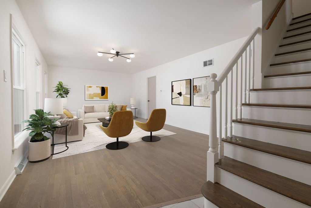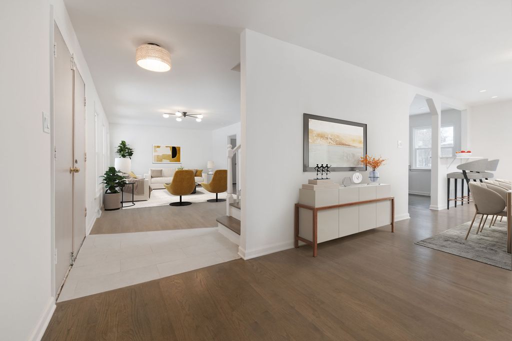 Modern remodeled home in sought-after Flossmoor. This stunning five-bedroom, 2.5-bath residence offers approximately 3,000 square feet of beautifully updated living space. Enter through the impressive double-door entry into a welcoming foyer highlighted by a grand staircase. The oversized family room provides an ideal gathering space, with a private office conveniently located just off the main living area. The contemporary kitchen showcases two-toned shaker cabinetry, quartz countertops, chic hardware, and a complete Samsung stainless steel appliance package. Just steps from the kitchen, the formal dining room features a fireplace, adding a touch of elegance. Refinished hardwood flooring flows throughout the main level, which also includes double sliding patio doors and a stylish powder room. The second level features three generously sized bedrooms plus a luxurious primary suite. The spacious primary bedroom offers ample closet space and a spa-inspired bathroom with upscale tile work, modern fixtures, and a custom vessel vanity. The secondary bedrooms are all generously sized and share a beautifully updated bathroom with a double vanity, contemporary mirrors, and modern finishes. All bathrooms feature custom vanities. The lower-level basement provides approximately 1,000 square feet of additional space, ready to be finished for extra living area, a home business, gym, or recreation room. Completing the home is a massive backyard, a two-car garage, and an extended driveway.