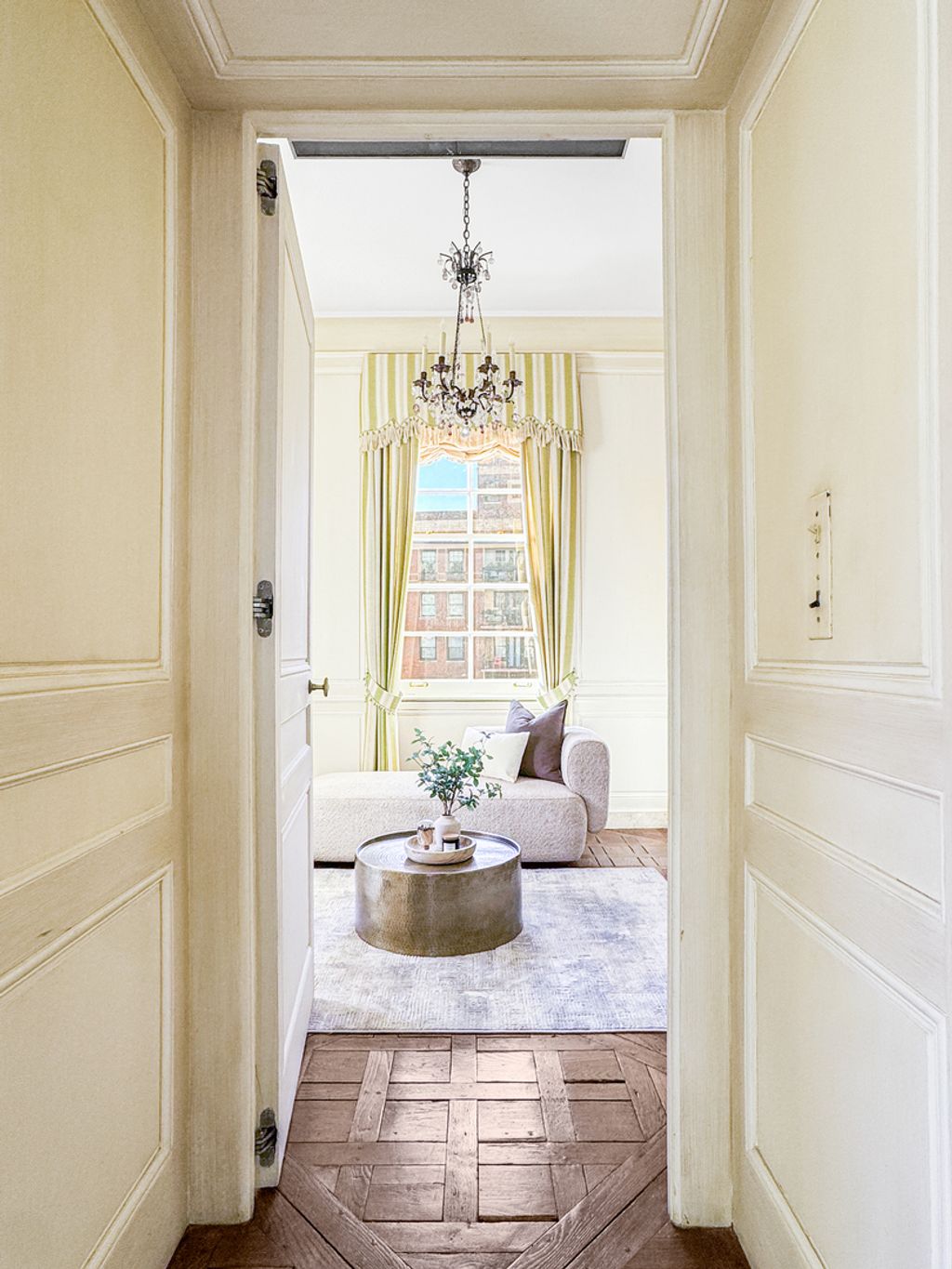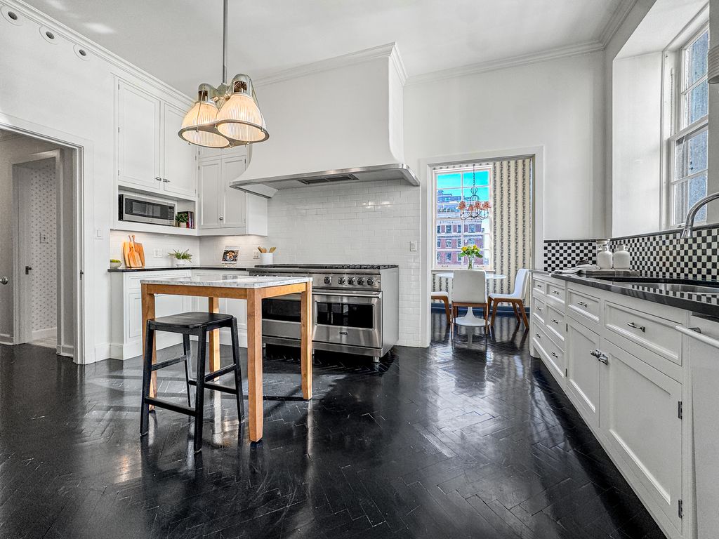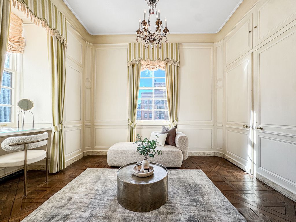 Available for the first time in forty years, this 4,500-square-foot full-floor Gold Coast cooperative offers exceptional scale, privacy, and architectural significance. With 10.5-foot ceilings, expansive proportions, and open views of Goudy Park, Lake Michigan, and the city skyline, the residence lives like a single-family home in a prestigious, full-service building. Originally owned by the building's architect, Philip Maher, and later acquired by Potter Palmer II as a wedding gift for his son, the apartment has been thoughtfully enhanced over time, most recently with interiors by Colfax and Fowler, blending historic character with a timeless, livable aesthetic. Beautifully preserved original detailing includes refined moldings, paneled walls, herringbone floors, and two fireplaces. A remarkable library attributed to David Adler features light-pickled Canadian spruce paneling and a concealed door to the living room. Additional Adler-inspired elements include the primary suite, where an imported Versailles parquet floor and elegant bath finishes create a sense of timeless luxury. The layout is both gracious and highly functional, with a formal entry foyer, expansive living and dining rooms, and a Christopher Peacock kitchen complemented by the original butler's pantry and a breakfast room. There are three large en suite bedrooms, along with two additional maids' rooms and a full bath, offering exceptional flexibility for offices, guests, or fitness. The primary suite, reconfigured by Maher, includes dual baths and a beautifully paneled dressing room. Additional features include SpacePak central air conditioning, in-unit laundry, a secondary laundry room, and a private storage room. Convenient garage parking is available close by. A rare offering that combines architectural pedigree, volume, and discretion, this residence delivers the presence of a grand historic home with the simplicity and security of cooperative living in one of Chicago's most established neighborhoods.