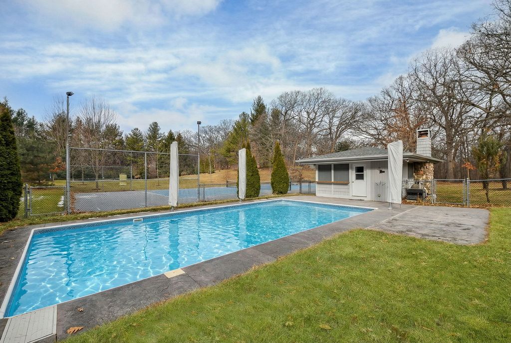 Set at the end of a quiet street and surrounded by 6.81 acres of lush, wooded landscape, this extraordinary 5,000+ square foot soft contemporary residence is a true architectural statement-designed to bring the outdoors in and elevate everyday living. From the moment you arrive, the home's design and layout make a lasting impression. Soaring beamed ceilings and expansive walls of windows create an impressive sense of scale, filling every room with natural light and offering breathtaking views of the surrounding forest. The family and dining rooms feature striking two-story ceilings, while the living room showcases dramatic 15-foot vaulted ceilings, enhancing the home's airy, gallery-like feel. Beautiful updated lighting and refined design details are displayed throughout, seamlessly blending modern sophistication with warm comfort. The main-floor primary suite is a private retreat, thoughtfully designed as a step-down sanctuary with 12-foot ceilings and a fireplace, while curved walls of windows frame tranquil woodland views. Adjacent to the suite is a flexible fourth bedroom-ideal as a nursery, office, or sitting room-offering exceptional versatility. The second and third bedrooms are spacious ensuites, each with its own full bath, providing privacy and comfort for family and guests alike. At the heart of the home, the expansive kitchen impresses with rich cherry cabinetry, quartz countertops, and high-end stainless-steel appliances. A large center island comfortably seats five, making it the perfect gathering spot. A butler's pantry provides additional storage and prep space, while easy access to the screened-in porch extends entertaining opportunities outdoors. Beyond the main residence, the property continues to impress. A private guest house offers a great room, kitchenette, bedroom with private bath, and an upper loft-ideal for extended stays, multigenerational living, or creative pursuits. The separate pool house is equally well-appointed, complete with its own fireplace, mini kitchen, and half bath, creating the ultimate setting for summer entertaining. Adjacent to the in-ground pool is a versatile sports court-perfect for tennis, shuffleboard, pickleball, or basketball-offering endless opportunities for recreation. The grounds provide both privacy and possibility, with mature trees and expansive acreage creating a rare sense of seclusion. For those seeking additional space, the 3,000+ square foot walk-out basement is ready for your finishing touches, presenting endless opportunities for customization. This one-of-a-kind estate masterfully combines architectural drama, thoughtful design, and resort-style amenities-all within a peaceful, wooded setting. St. Charles School District #303.
