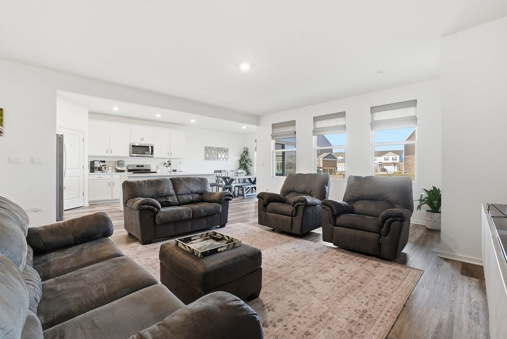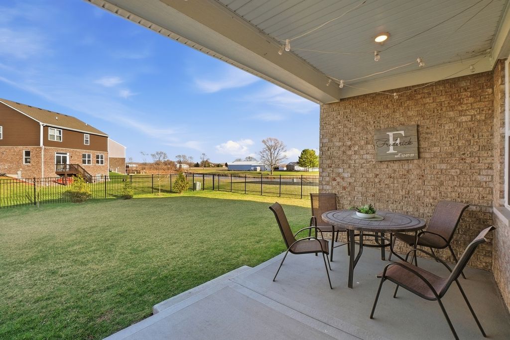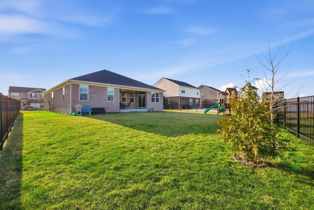 ***OH cancelled**offer accepted*** Step inside and feel it immediately-this is the kind of home that just flows. This beautifully designed ranch offers the perfect blend of everyday functionality and elevated finishes, creating a lifestyle that feels both effortless and refined. This quick move-in Fairfield model is available now with NO SSA in Manhattan and features charming brick detail, a spacious 3-car garage, and a generously sized basement that is already partially finished-giving you valuable additional living space from day one. Inside, 9' ceilings enhance the open, airy feel throughout the home. With 4 bedrooms and 2 full baths, the layout is thoughtfully designed to accommodate both everyday living and entertaining. The kitchen truly serves as the heart of the home, showcasing designer 42" cabinets with crown molding and deluxe construction, quartz countertops, stainless steel appliances, and a walk-in pantry. It opens seamlessly into the great room and dining area, making it easy to host, gather, and enjoy every moment. Just off the main living space, a covered back porch creates the perfect extension of the home-ideal for quiet mornings or relaxing evenings. The primary suite is privately situated at the back of the home, offering a peaceful retreat complete with a large walk-in closet and a spa-inspired bath featuring a raised dual vanity, water closet, oversized shower with seat and clear glass doors, ceramic finishes, and a linen closet. Luxury vinyl plank flooring runs throughout the main living areas, while all bedrooms feature plush carpet with upgraded padding for added comfort. The laundry room is conveniently tucked near the garage entry for everyday ease. Outside, the fully sodded homesite is complemented by professional landscaping and a fully fenced yard, while inside you'll appreciate the added value of all window treatments already installed and all appliances included-even the washer and dryer. Designed for modern living, this home also includes America's Smart Home Technology, allowing you to control and monitor your home from anywhere. Whether adjusting settings from your phone or using voice commands, the system seamlessly connects with Bluetooth, Wi-Fi, Z-Wave, and cellular devices to create a truly connected experience. Only 2 years young, this home offers the benefits of newer construction without the wait-ready for you to move in and start your next chapter.